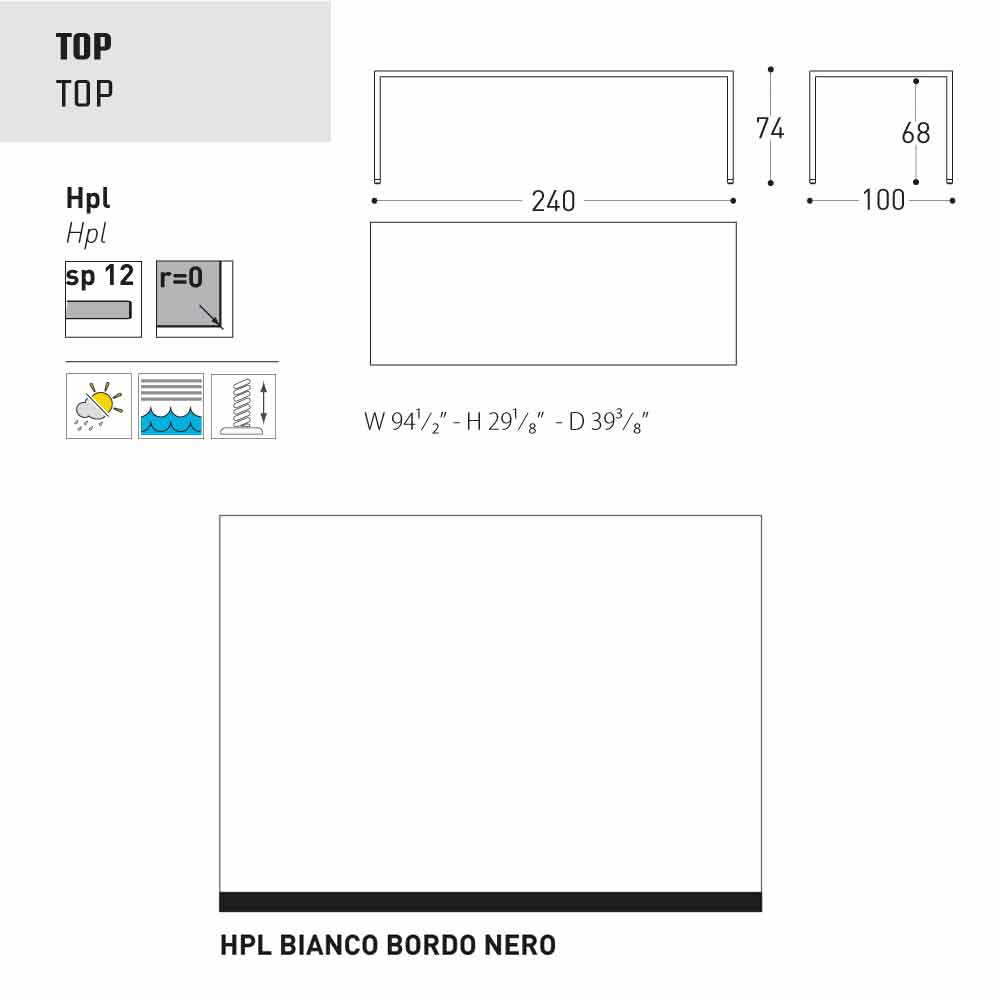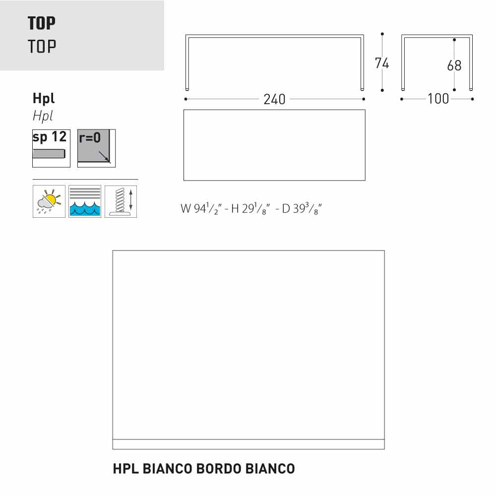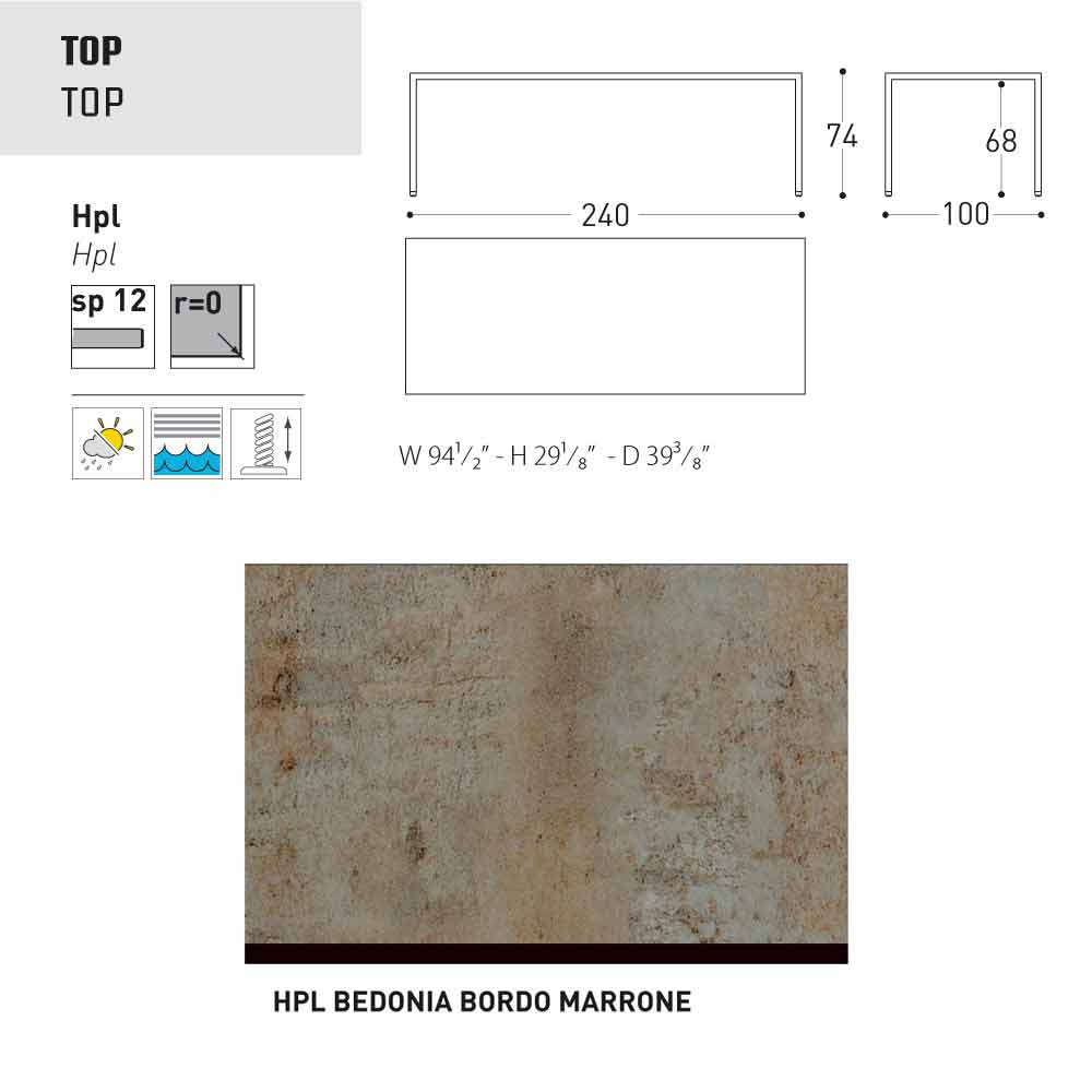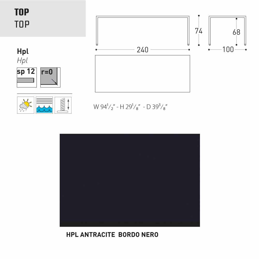 - 240x100xH74 cm