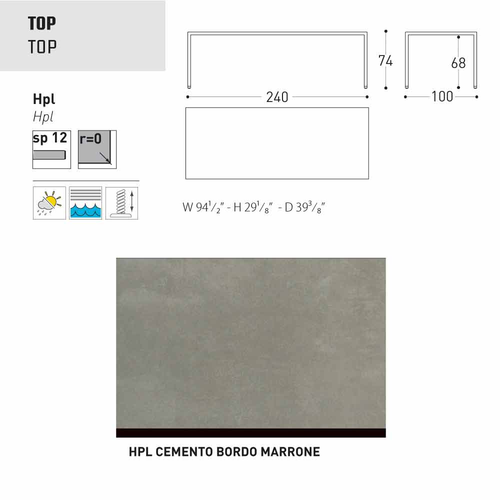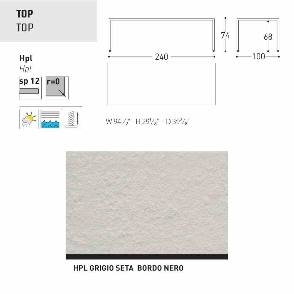 Collection cu structura din aluminiu acoperit cu pulbere, HPL sus grosime 12 mm si nivelare picioare cu reglare de la 0-5 mm. Tabelul Victor poate fi folosit atât ca masă în aer liber, care în zona de living si se propune in diferite dimensiuni si finisaje.