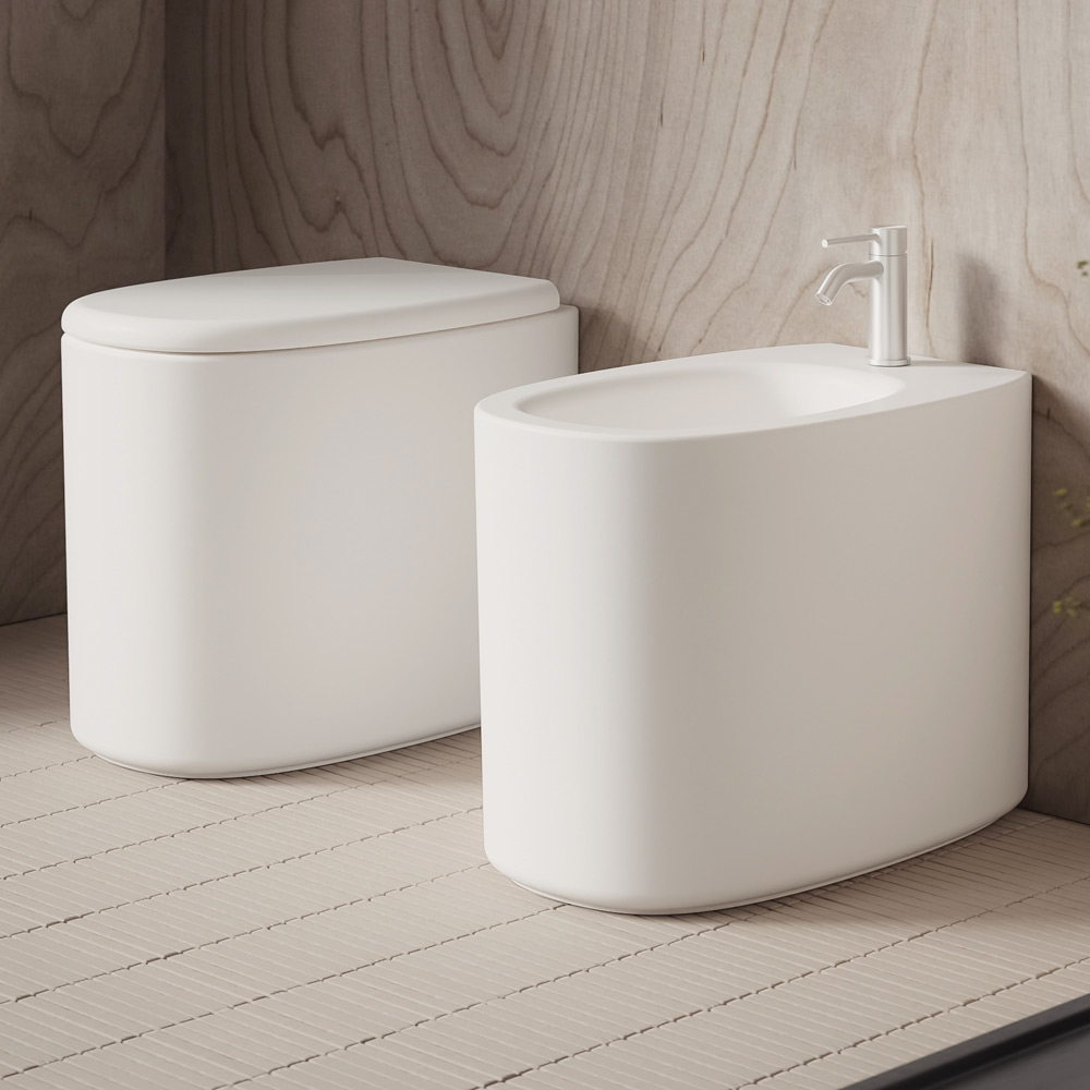 O toaletă care combină liniile moi și curate cu o eleganță atemporală, perfectă pentru cei care își doresc o baie modernă și funcțională fără a sacrifica rafinamentul.