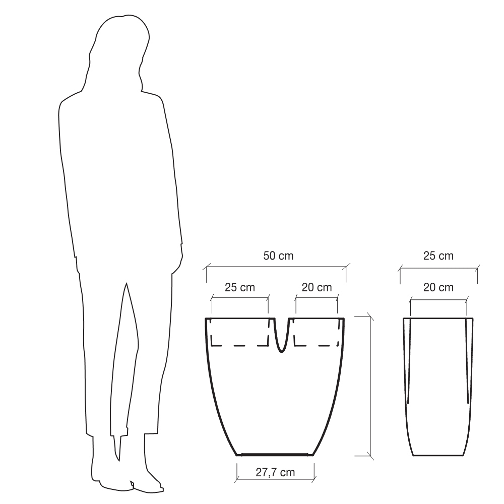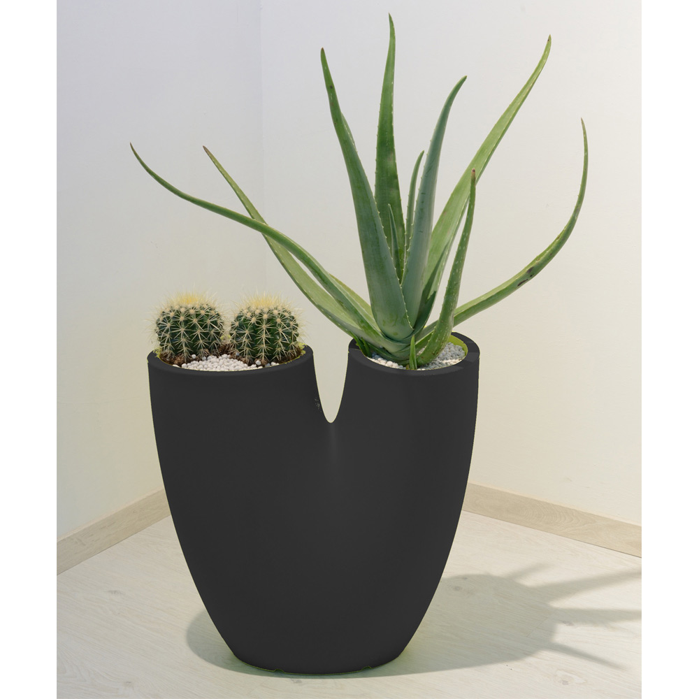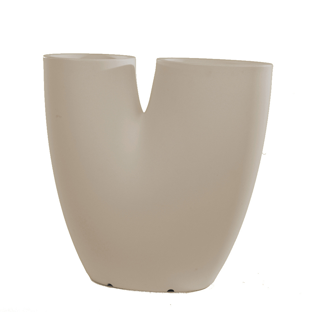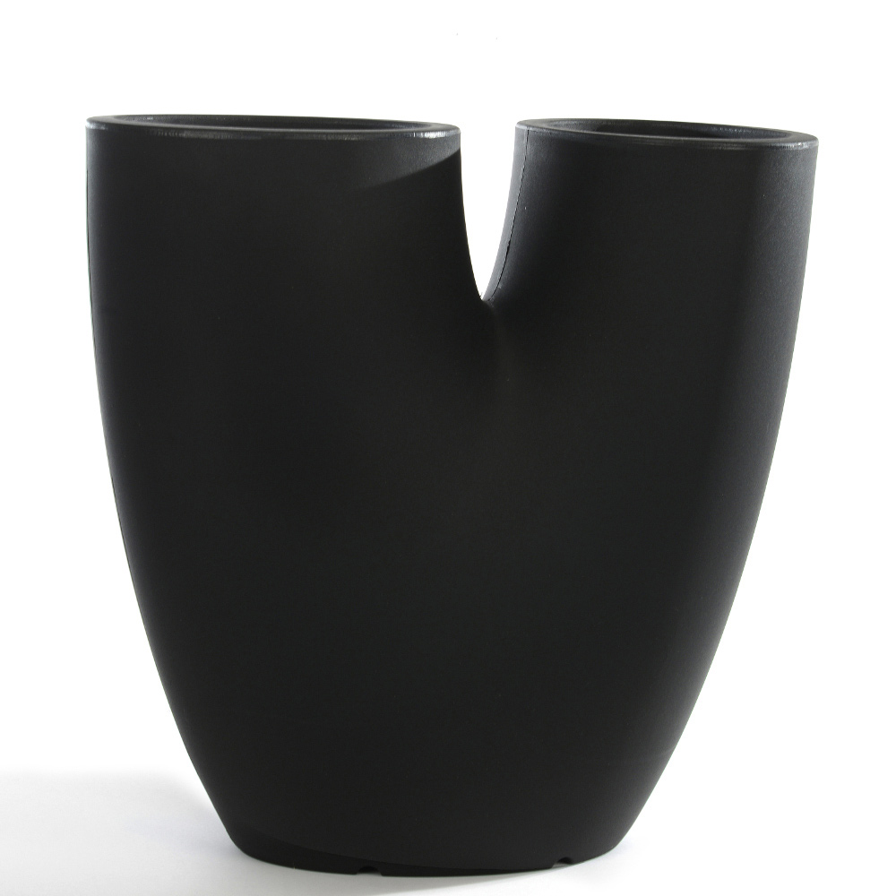 vaza moderna cu un design zvelt si captivant, conceputa pentru a plasa doua tipuri de plante diferite intr-o singura vaza datorita celor doua gauri existente. Poate fi folosit atat ca vaza cat si ca suport pentru vaza. Disponibil în diferite culori, se potrivește cel mai bine atât mediilor exterioare, cât și interioare.