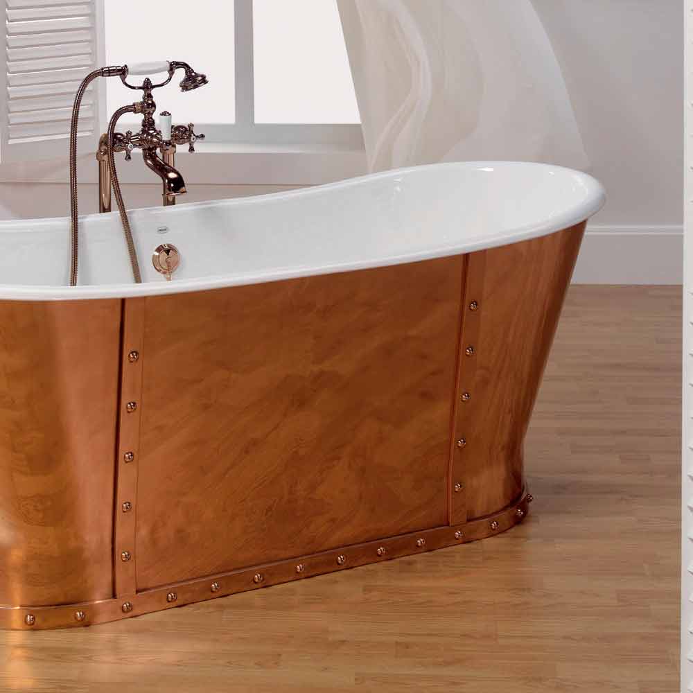 Cadă de sine stătătoare realizată în întregime din fontă care se sprijină pe pământ. Finisaj intern de 2 mm emailat cu titan și placat exterior cu cupru. Cadă de baie care reprezintă vârful luxului!