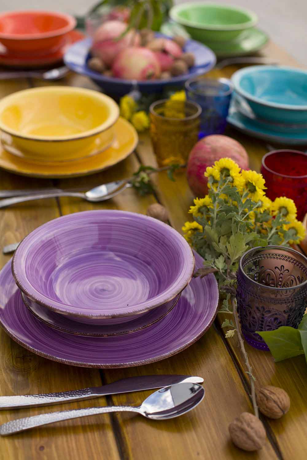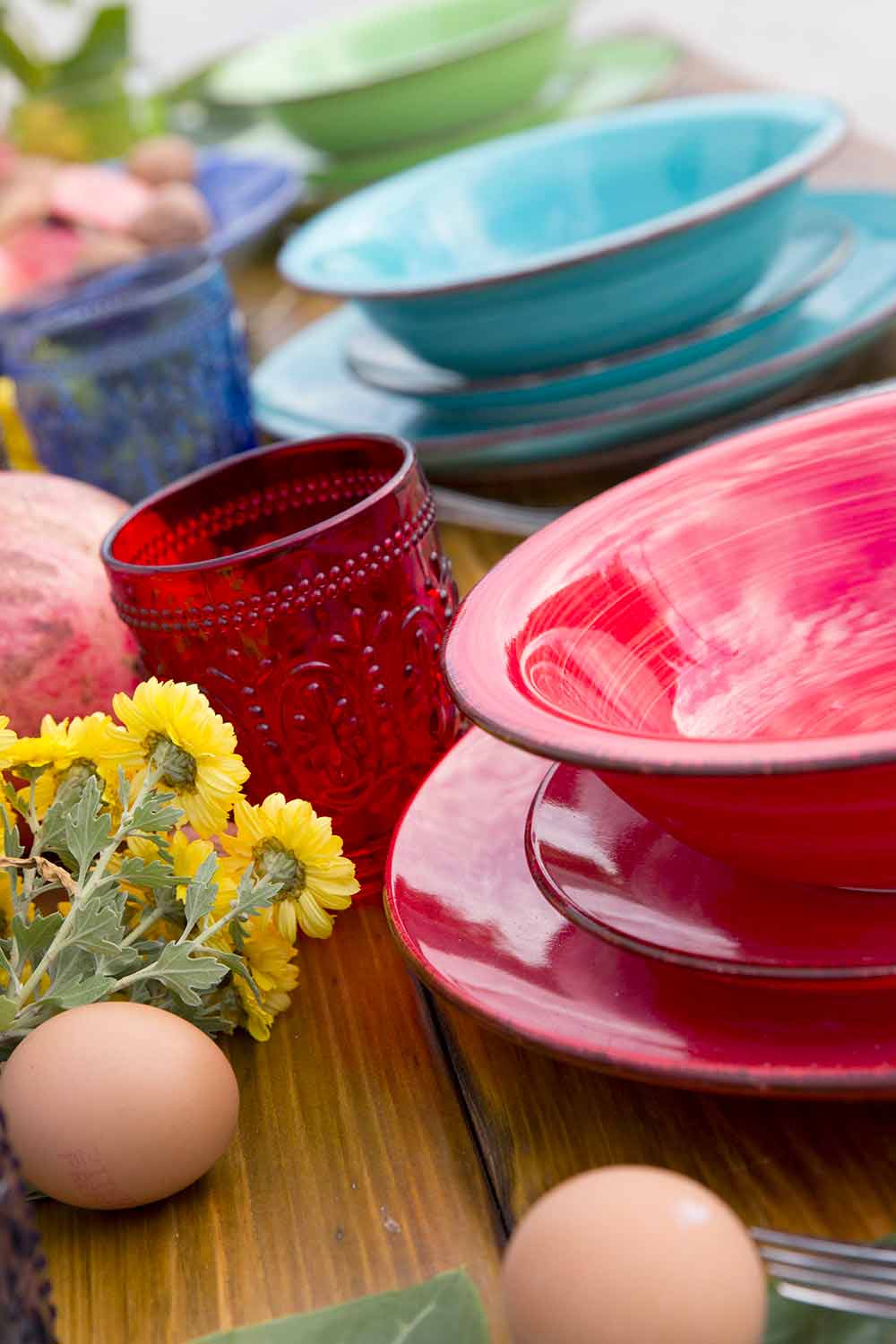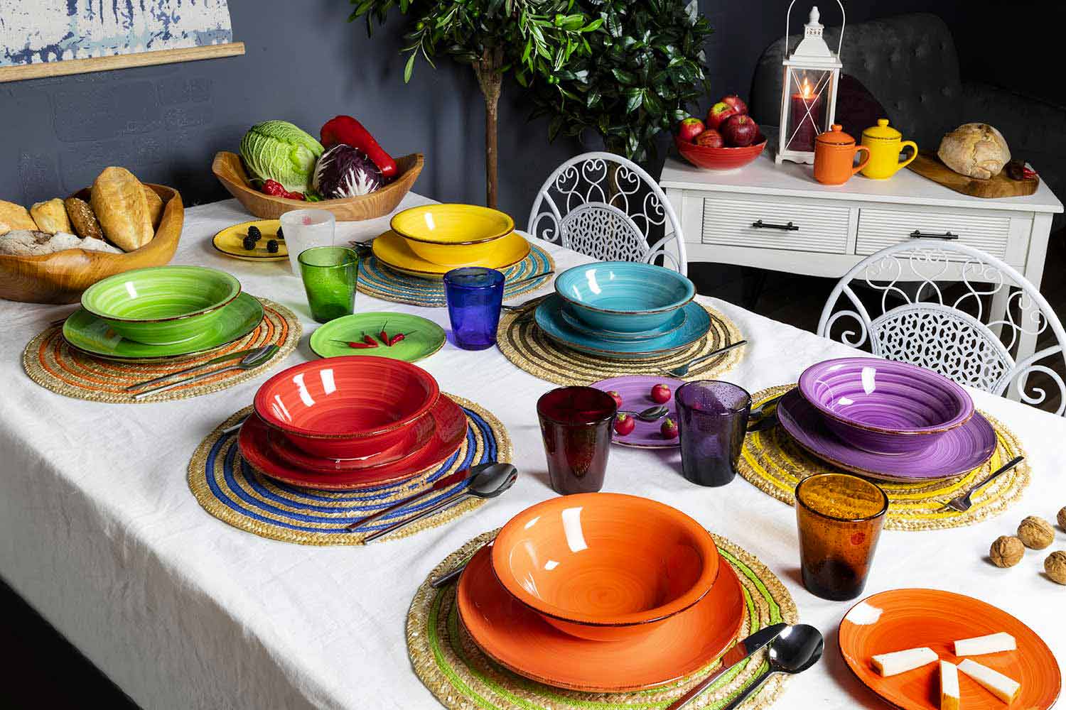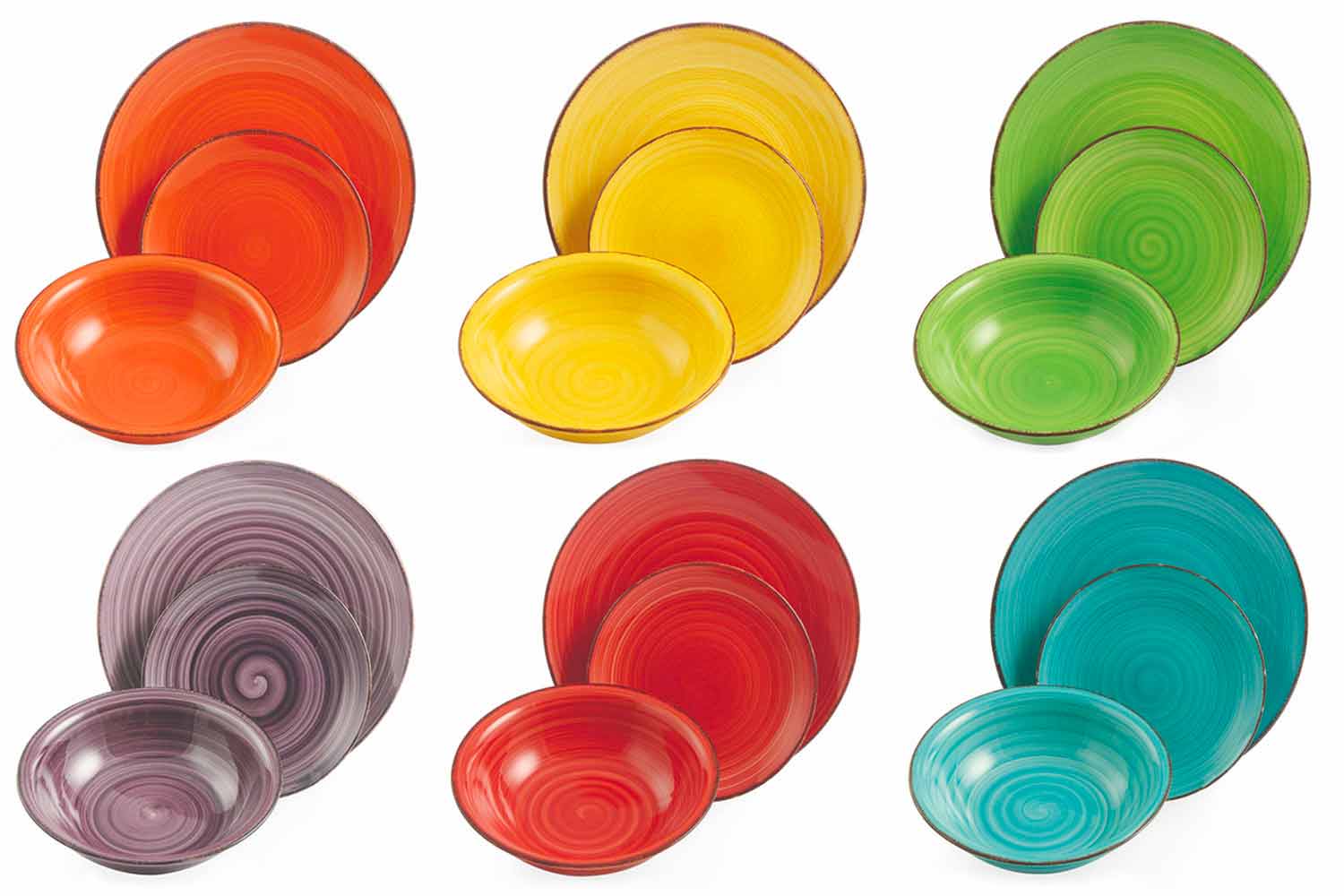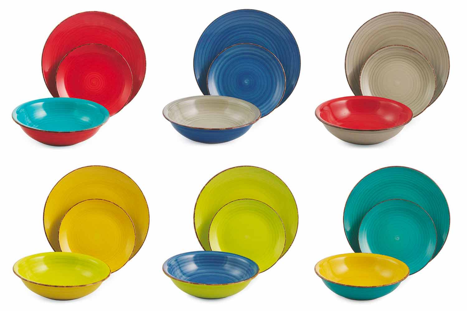 Set de farfurii colorate pentru tacamuri în 18 bucăți.