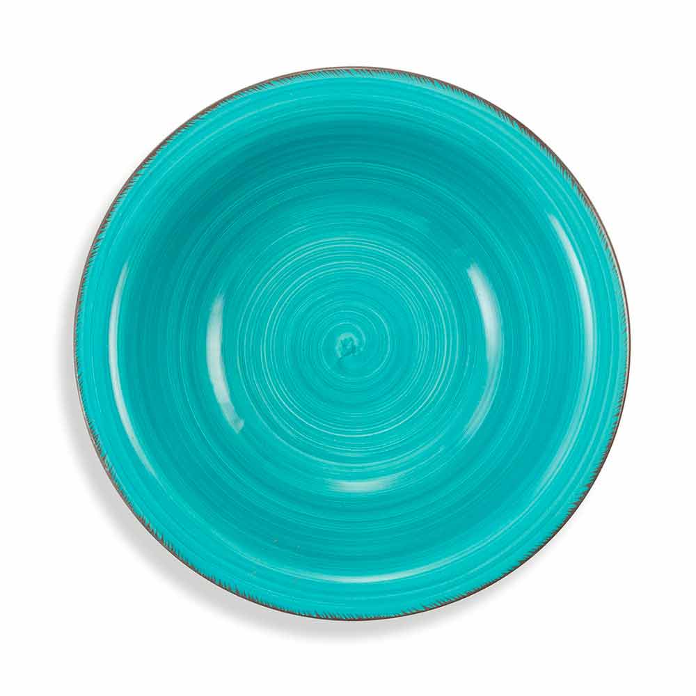 Placa adâncă, de fapt, poartă doar pe suprafața sa inferioară aceleași culori ca farfuria plată și placa de fructe.