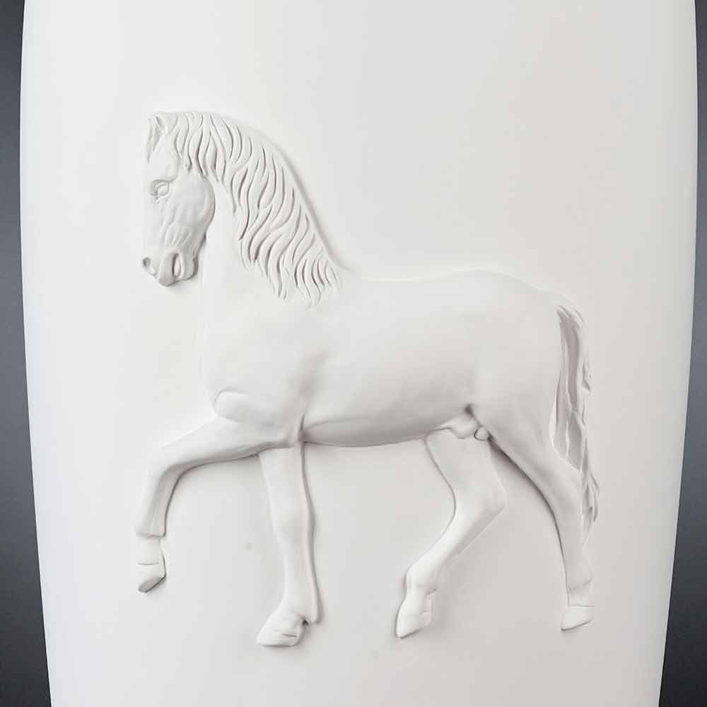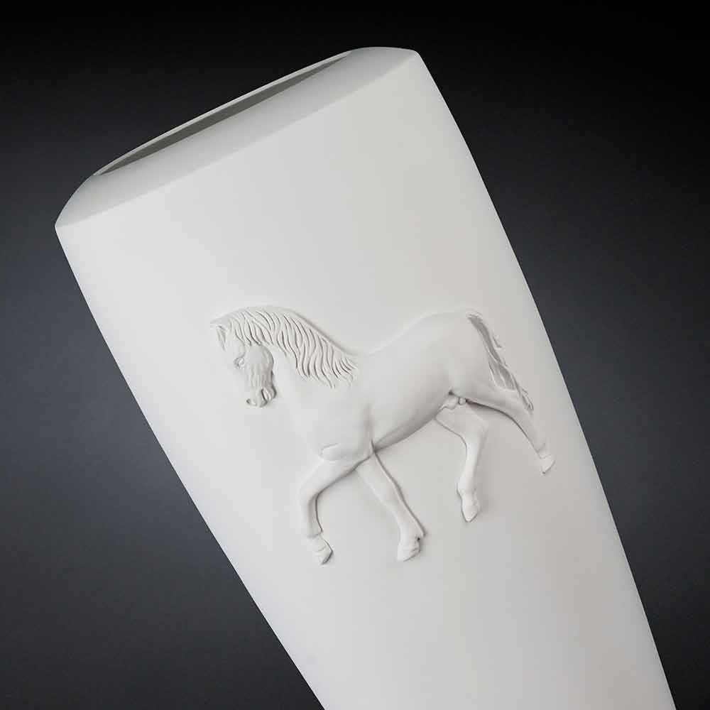 decorative din ceramica vaze lucrate manual de artizani italieni cu un design modern, cu recurs decorative în relief care prezintă un cal.