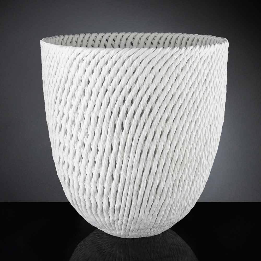 Vaza decorativă pentru interioare din ceramică albă opacă realizată manual printr-o producție 100% Made in Italy . Un accesoriu elegant caracterizat prin textura țesută specială care amintește un coș de răchită subliniind astfel valoarea meșteșugului marcat de precizie, pasiune și dragoste pentru tradiție. Rezultatul este o idee de mobilier exclusivist ideal pentru îmbogățirea meselor mari, intrărilor, dormitoarelor sau a oricărui alt spațiu în care doriți să completați estetica cu personalitate și rafinament . Un stil ideal pentru cele mai variate medii, de la mobilier de casă până la cel al hotelurilor, restaurantelor, spațiilor contractuale, spa-urilor, dar și ca decor pentru evenimente și nunți.