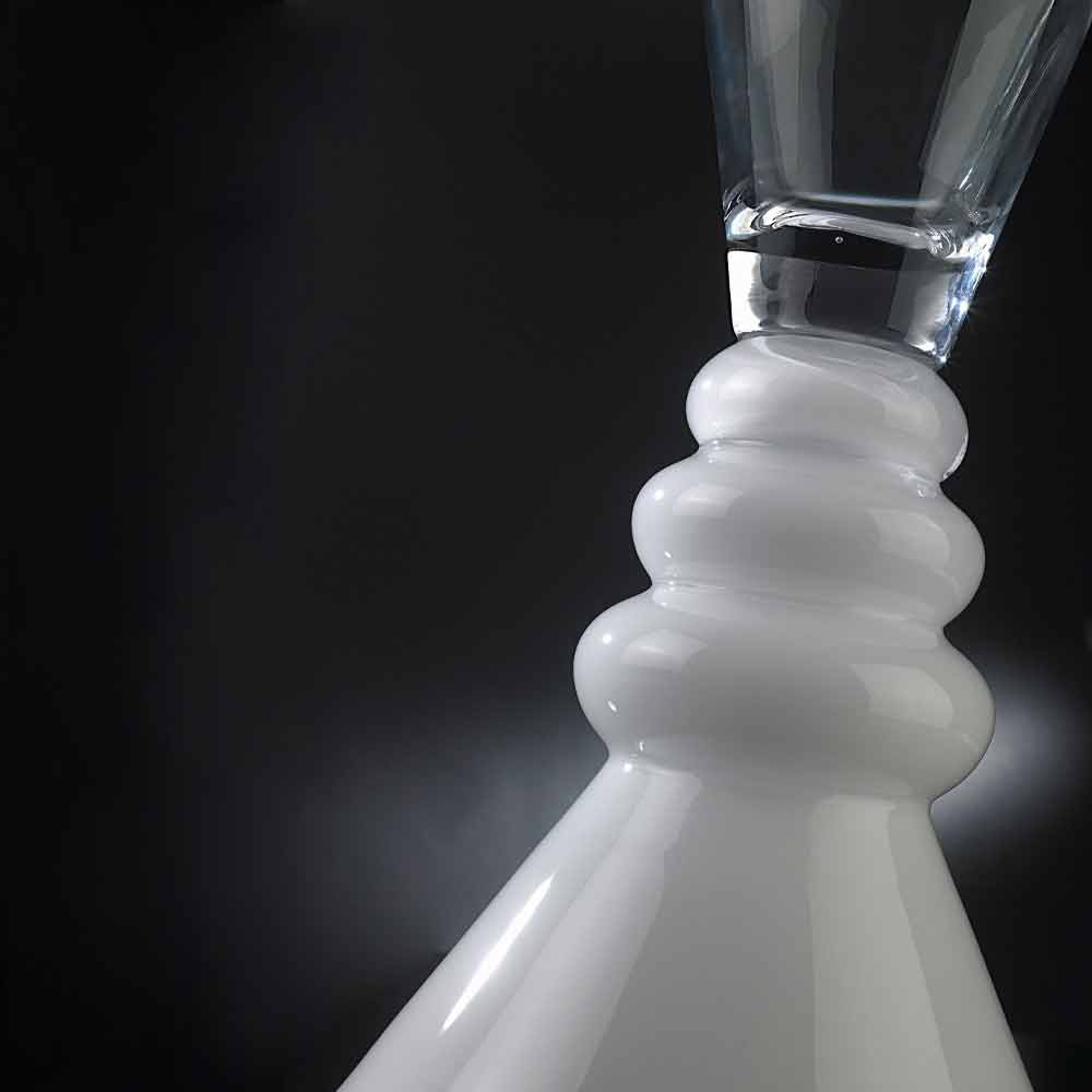 Vaza ornamentală din sticlă transparentă și albă fabricată în Italia.