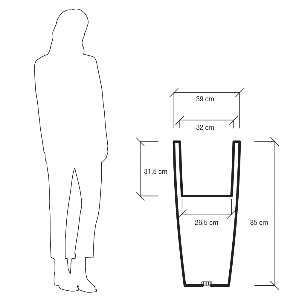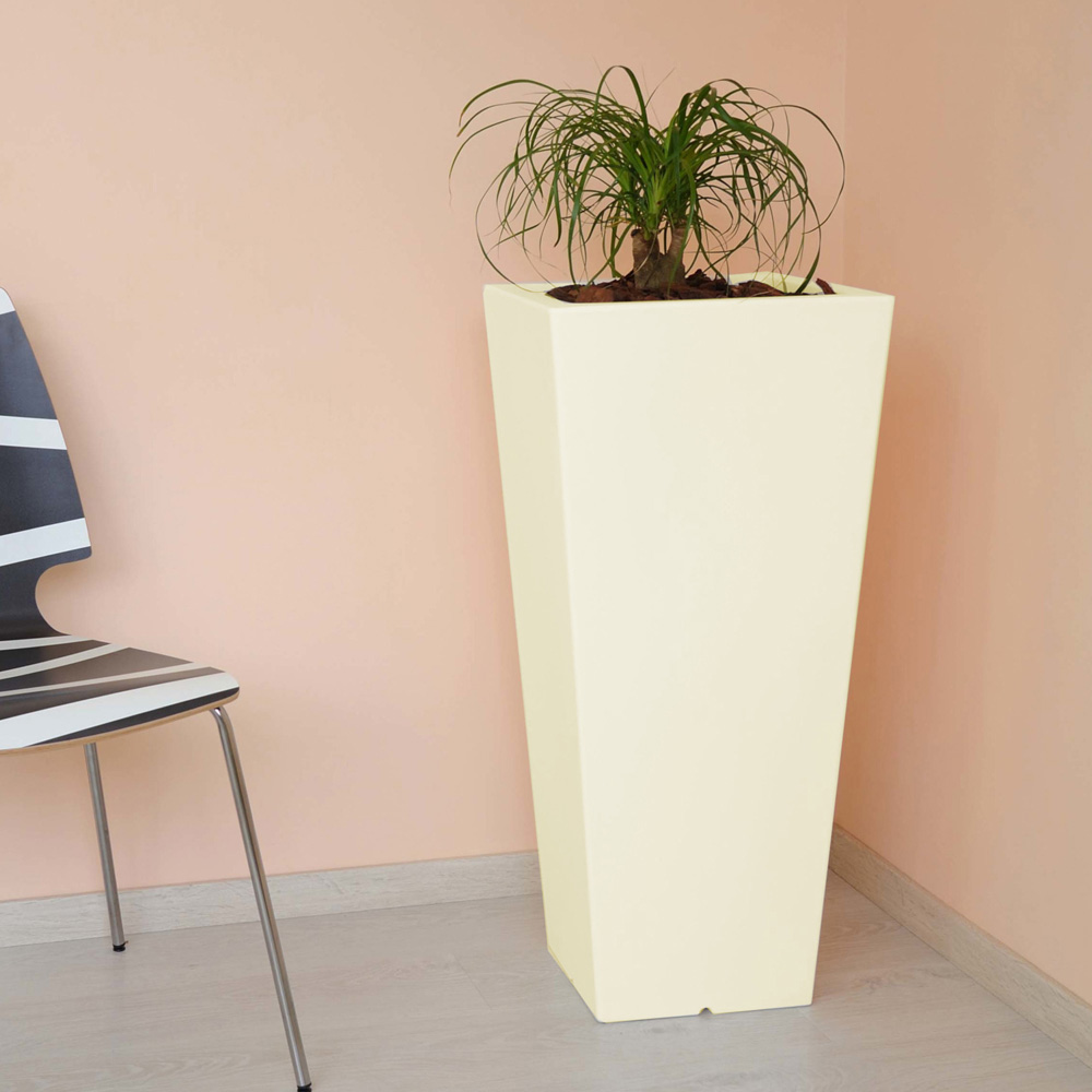 Vaza inalta cu forma patrata, eleganta si plina de stil potrivita pentru orice gradina. Fabricat din polietilena, este