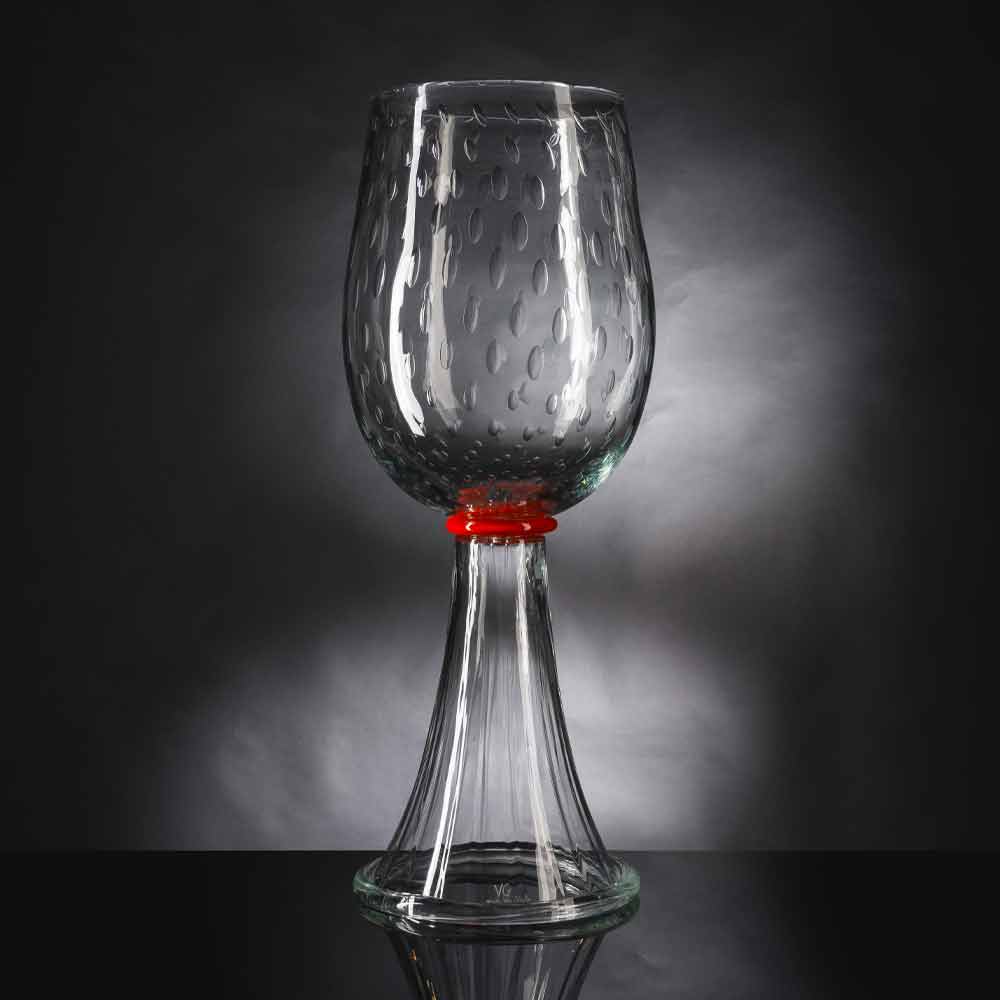 Vaza decorativă din sticlă suflată de Murano transparentă cu detaliu central roșu obținută printr-un proces 100% Made in Italy . Minunatul design elegant care caracterizează acest complement reprezintă forța sa reală, permițându-i să îmbogățească și să personalizeze orice situație stilistică datorită, de asemenea, utilizării sticlei de Murano, un material de calitate și de înaltă valoare . Manopera specială care acoperă partea superioară a vazei și detaliile vii și colorate poziționate în centru subliniază personalitatea sa sofisticată și modernă, dând viață unei idei de mobilier exclusiv și clasic. Un stil ideal pentru cele mai variate medii, de la mobilier de casă până la cel al hotelurilor, restaurantelor, spațiilor contractuale, spa-urilor, dar și ca decor pentru evenimente și nunți.
