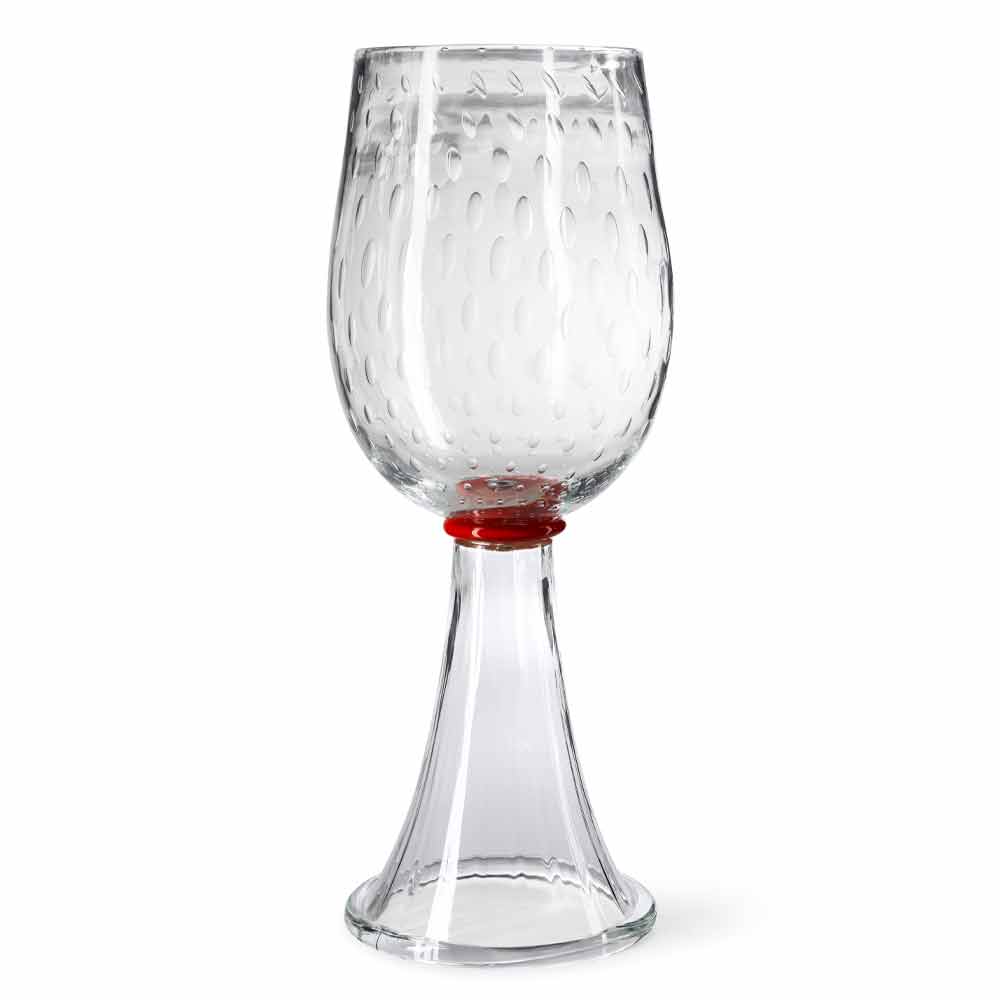Vaza de interior din sticlă de Murano transparentă cu detaliu roșu fabricată în Italia.