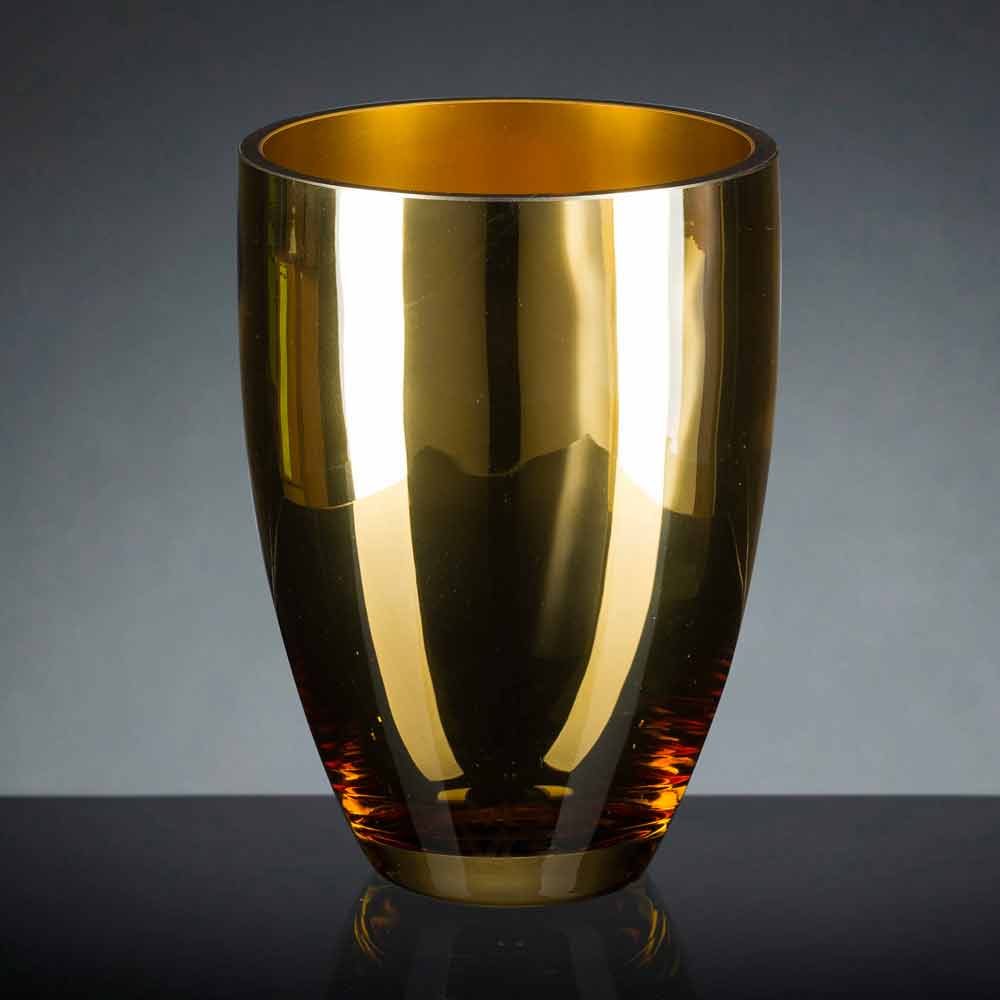 Vaza de interior din sticlă suflată cu finisaj auriu de 24k lustruit realizată manual în Italia de către maeștrii producători de sticlă, experți în domeniu de generații. Particularitatea sa este reprezentată de producția artizanală care își mărește valoarea și valoarea pentru a da viață unui rezultat exclusiv și de înaltă calitate . Culoarea specială aleasă îl face un complement extrem de elegant, capabil să îmbogățească mobilierul din jur cu personalitate. Un design ideal pentru cele mai variate medii, de la mobilierul de casă până la cel al hotelurilor, restaurantelor, zonelor contract, spa-urilor, dar și ca decor pentru evenimente și nunți.