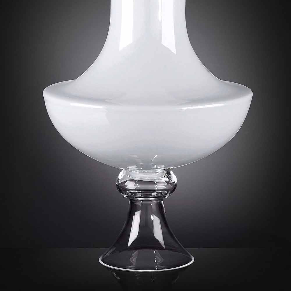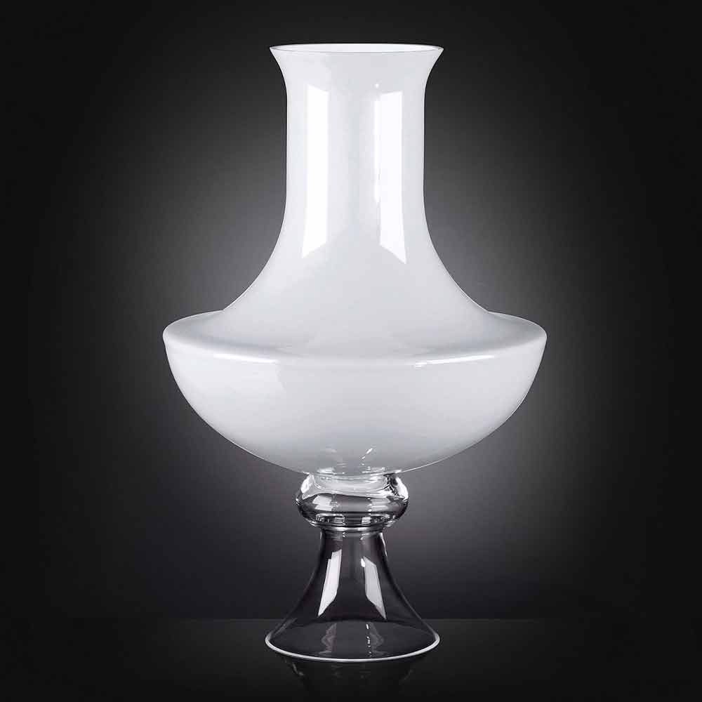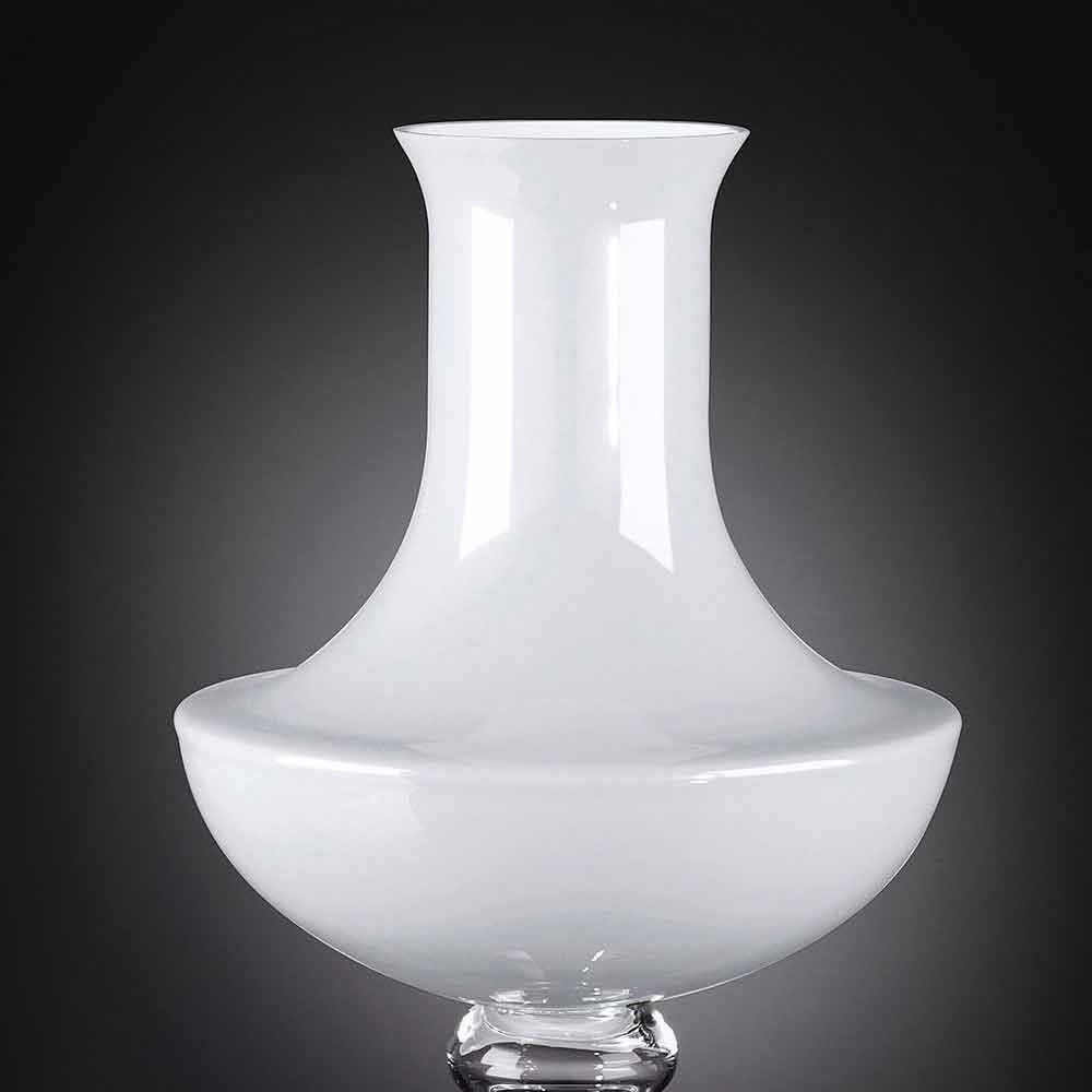 Vaza modernă pentru interior din sticlă albă cu bază transparentă realizată printr-un proces 100% Made in Italy . Un complement caracterizat printr-o estetică simplă și curată și o figură conturată de forme moi și linii sinuoase care permit utilizarea sa în orice mediu cu un stil rafinat datorită și eleganței atemporale a sticlei, un material de calitate de înaltă valoare. . Un design ideal pentru cele mai variate medii, de la mobilierul de casă până la cel al hotelurilor, restaurantelor, zonelor contract, spa-urilor, dar și ca decor pentru evenimente și nunți.