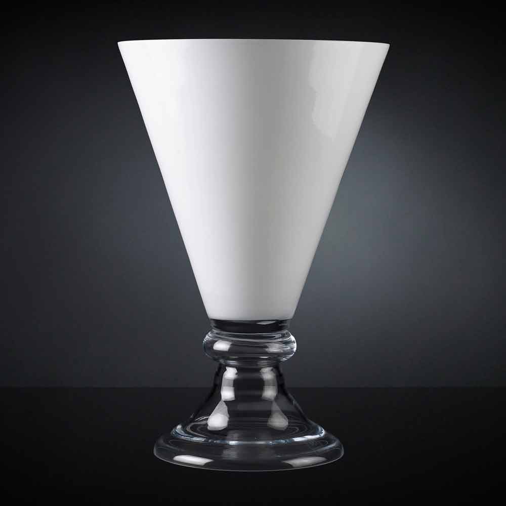 Vază contemporană pentru decorațiuni interioare din sticlă și prelucrare albă transparentă cu ajutorul unui produs 100% Made in Italy Un design ideal pentru cele mai variate medii, de la mobilierul de casă până la cel al hotelurilor, restaurantelor, zonelor contract, spa-urilor, dar și ca decor pentru evenimente și nunți. Estetica sa clasică și sofisticată reprezintă punctul forte care îi permite să completeze orice spațiu cu clasă, datorită și eleganței intrinseci a sticlei, un material de calitate cu valoare ridicată .