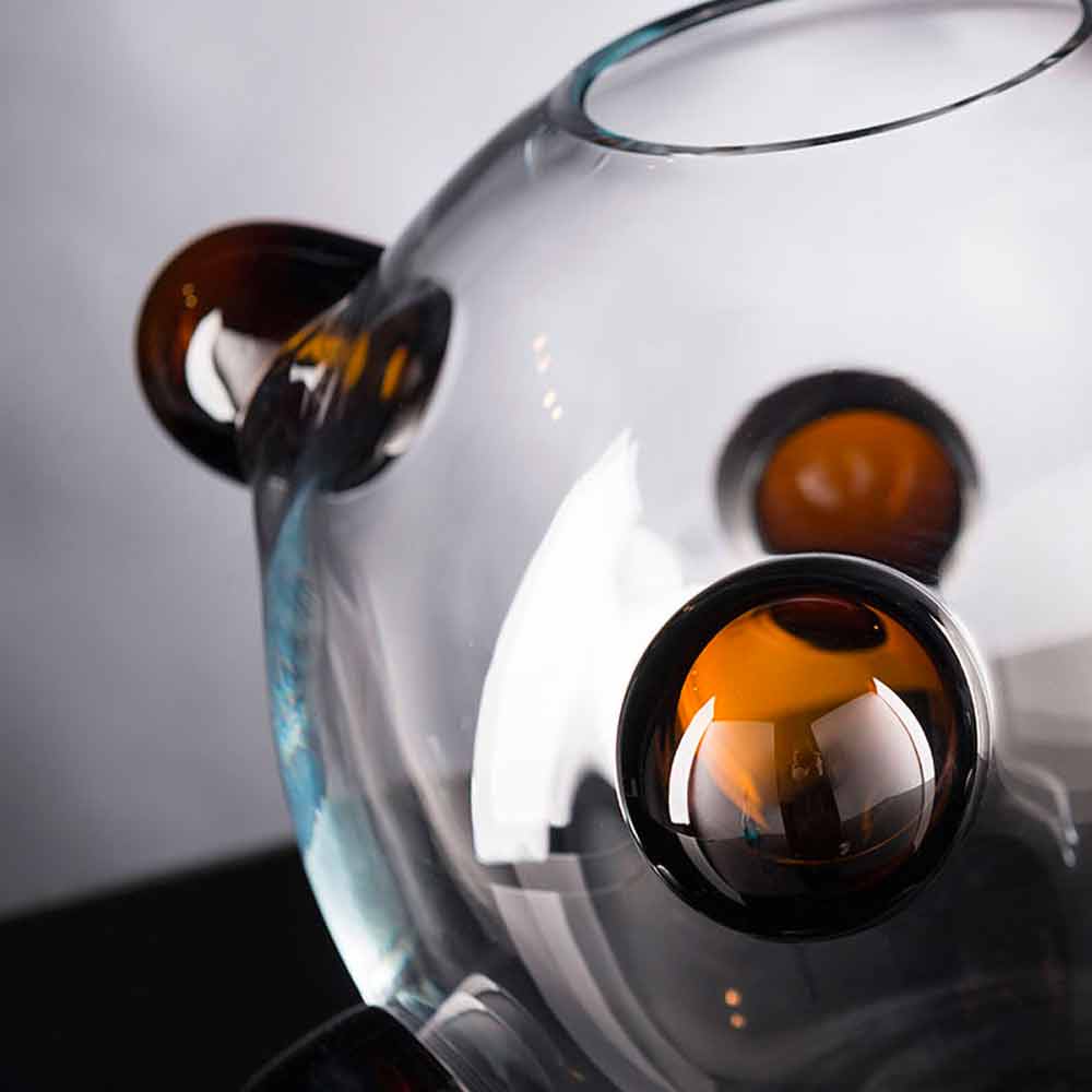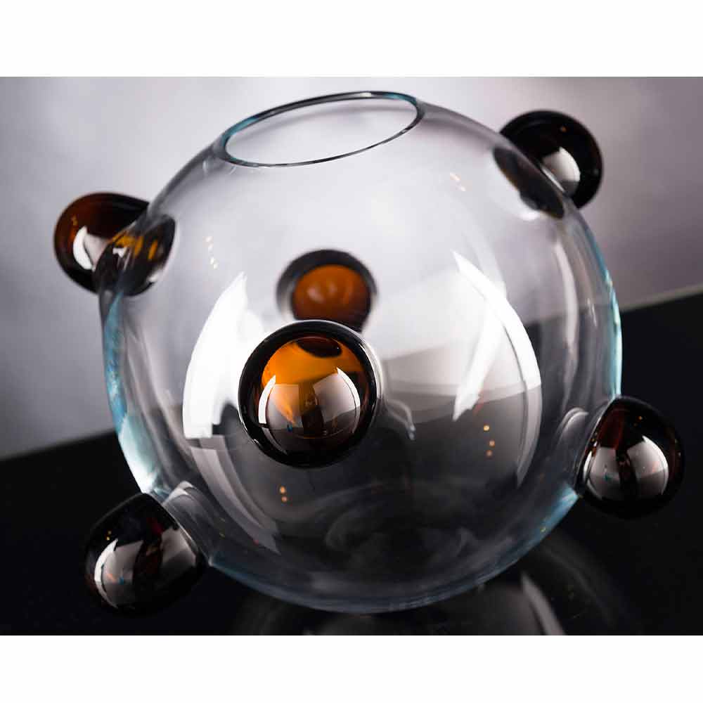 Vaza decorativă din sticlă suflată de Murano cu detalii colorate Made in Italy.