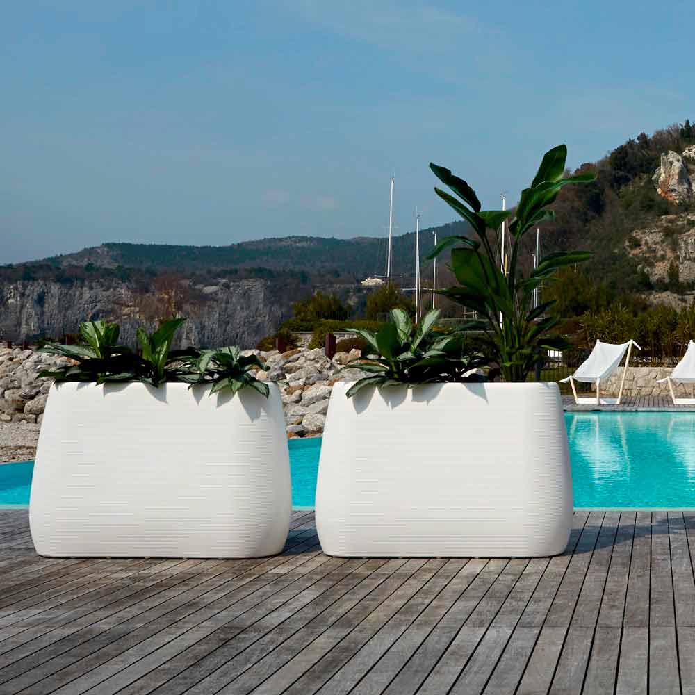 Vaza modernă pentru exterior sau interior în Poleasy alb în relief, realizată în Italia, în 3 dimensiuni, 2 bucăți.