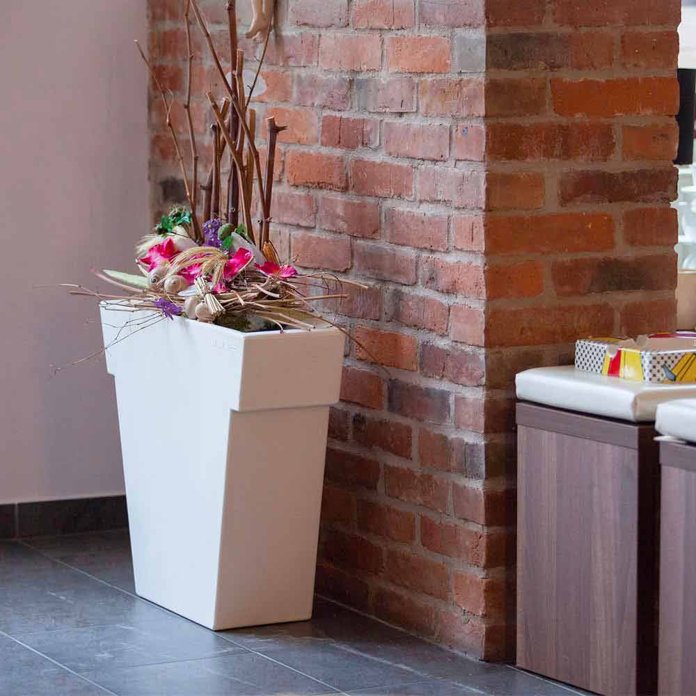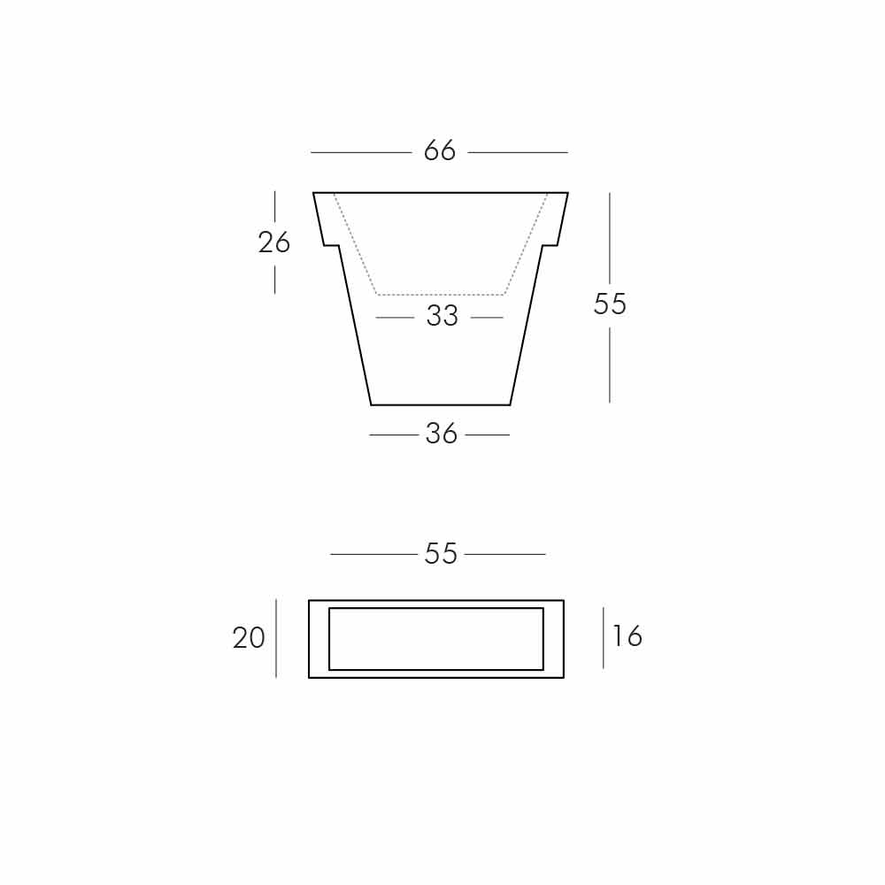 Vasul este o piesă de mobilier care se pretează atât în exterior, cât și în interior, datorită designului său foarte simplu și curat, fabricat în Italia. Se prezinta ca o reinterpretare minimalista a clasicei vaze de flori, cu aceeasi forma dar nu aceleasi grosimi, propunand o imagine jucausa si stilizata. Detaliu deosebit și perfect pentru a îmbogăți mediul și a da o notă de originalitate ieșind din schemele tradiționale.