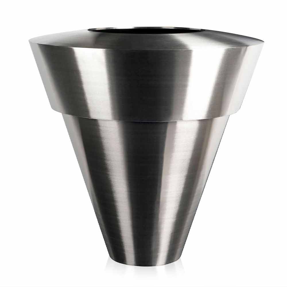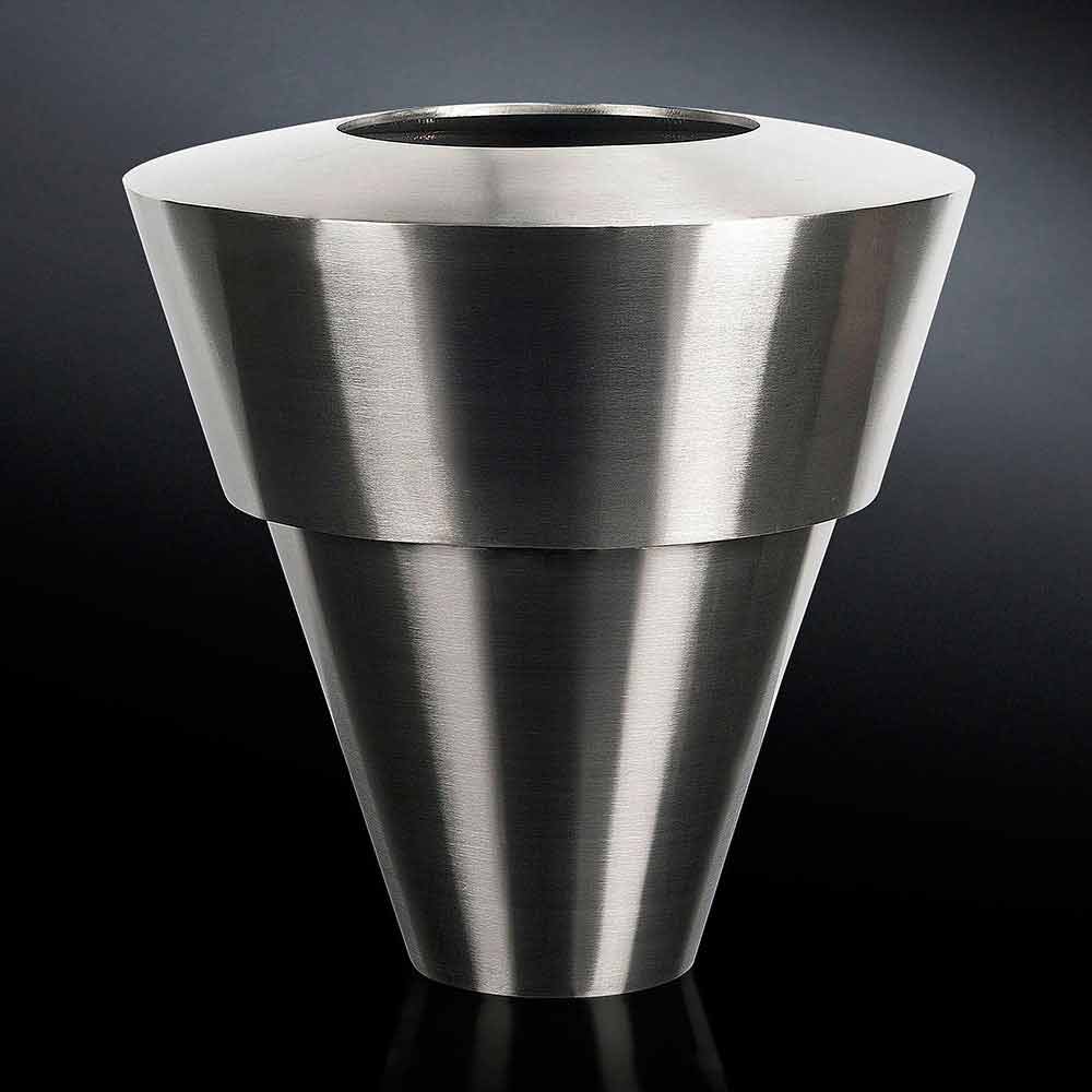 Vaza elegantă pentru interioare din oțel periat fabricată în Italia.