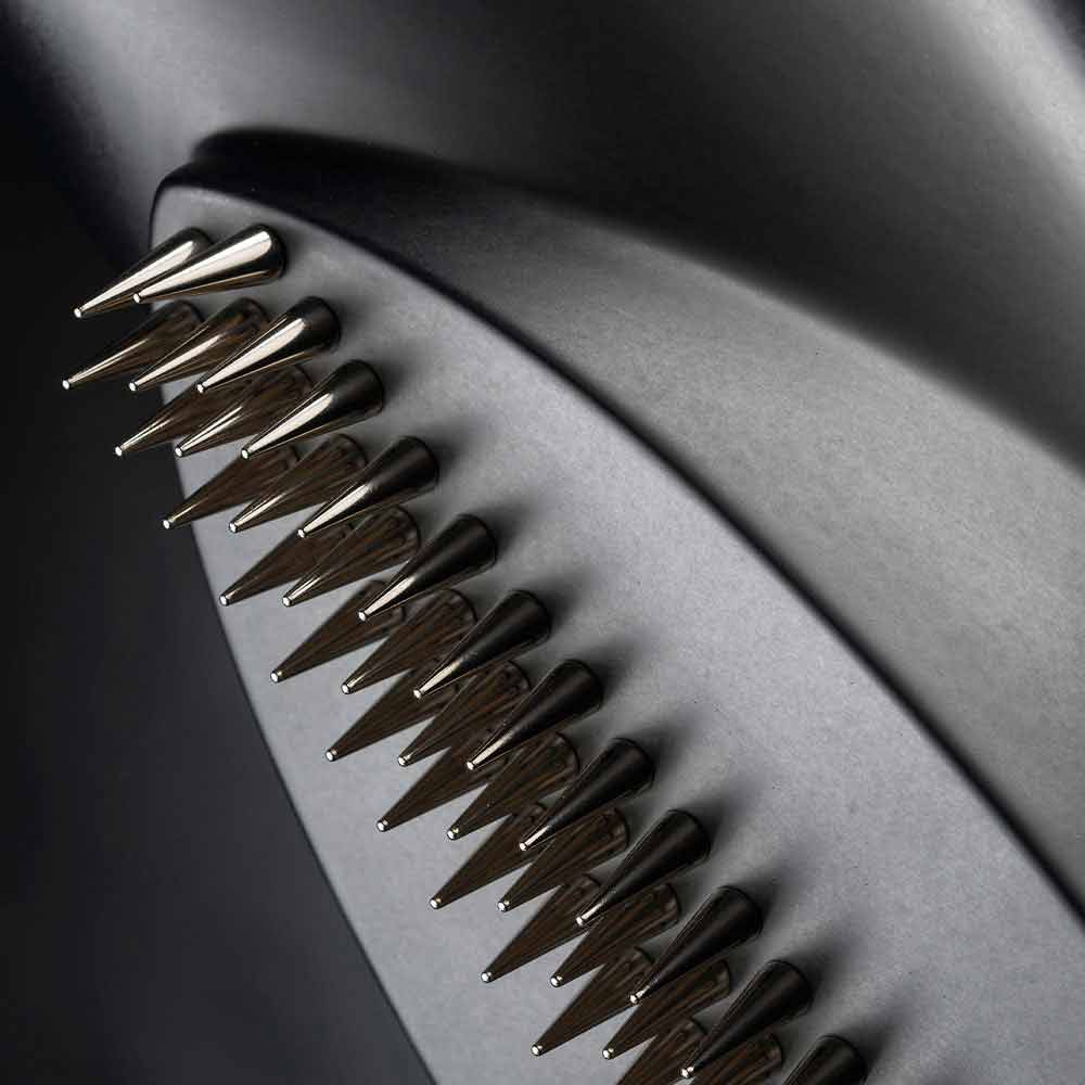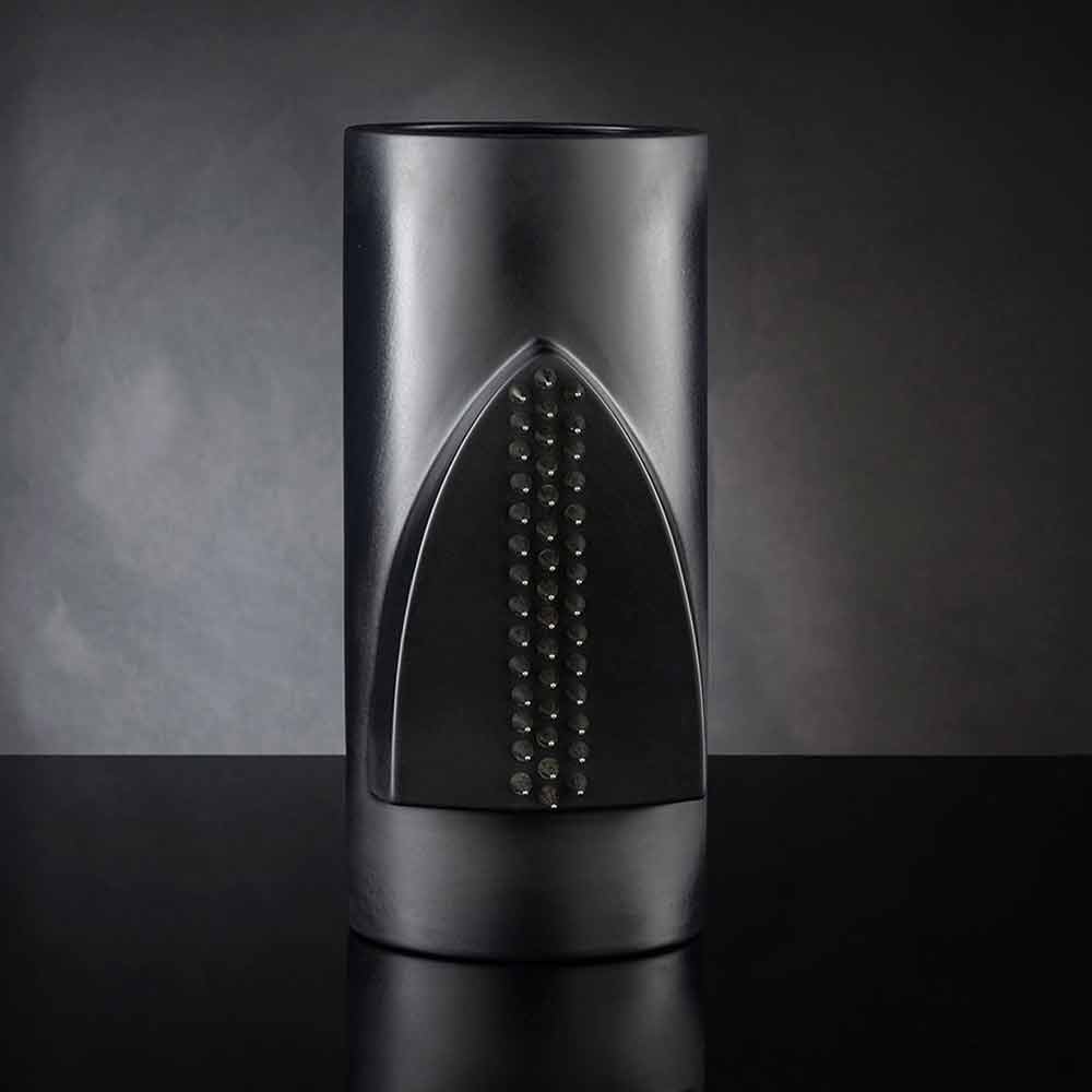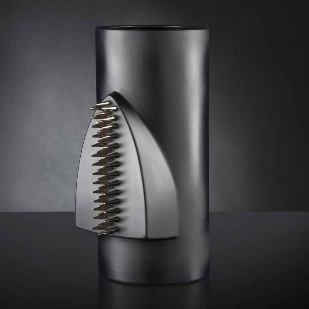 Vaza ornamentală interioară din ceramică neagră mată îmbogățită cu cuie de oțel, realizat printr-un meșteșug Made in Italy . Din întâlnirea dintre eleganța extremă a ceramicii și atingerea modernă a detaliilor metalice, se naște un element decorativ pentru medii moderne, plin de personalitate și caracter, ideal pentru cei care iubesc să-și mobileze spațiile cu accesorii cu un puternic impact scenografic care să ajuta la completarea aspectului camerei creând o armonie perfectă. Producția artizanală reprezintă unul dintre punctele sale forte, pe măsură ce crește și subliniază valoarea și calitatea produsului, dând viață unui rezultat exclusiv și rafinat . Un stil ideal pentru cele mai variate medii, de la mobilier de casă până la cel al hotelurilor, restaurantelor, spațiilor contractuale, spa-urilor, dar și ca decor pentru evenimente și nunți.