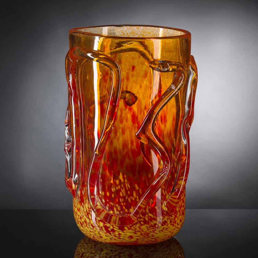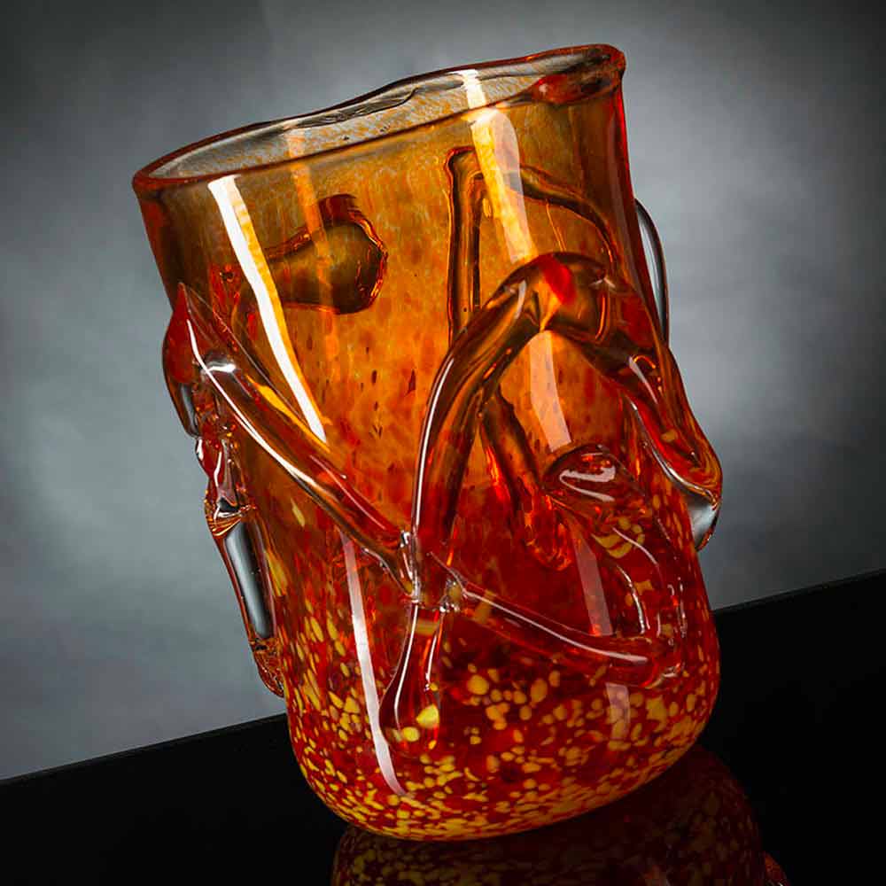 sticlă de Murano suflată cu finisaj portocaliu cu structură prelucrată. Minunatul