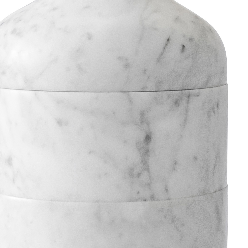 Această vază decorativă prezintă un design artizanal și luxos împărțit în 3 părți, realizată în întregime din marmură albă de Carrara satinată.