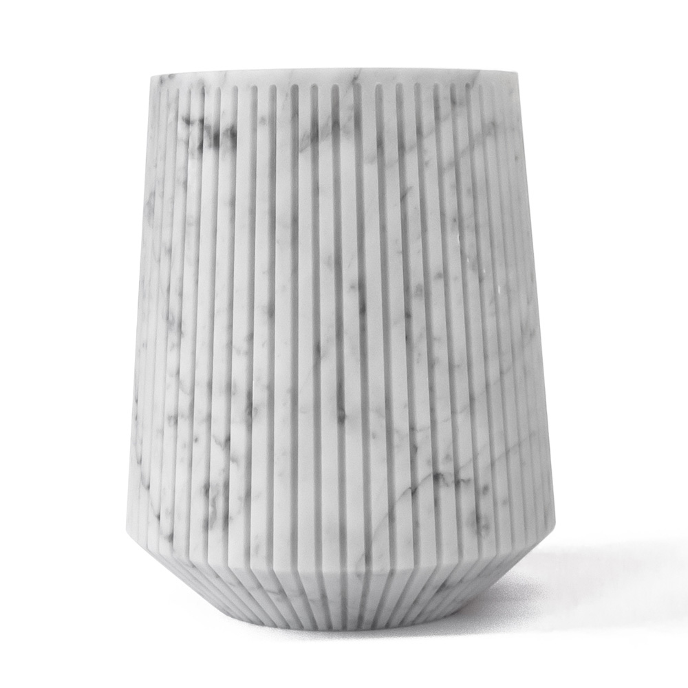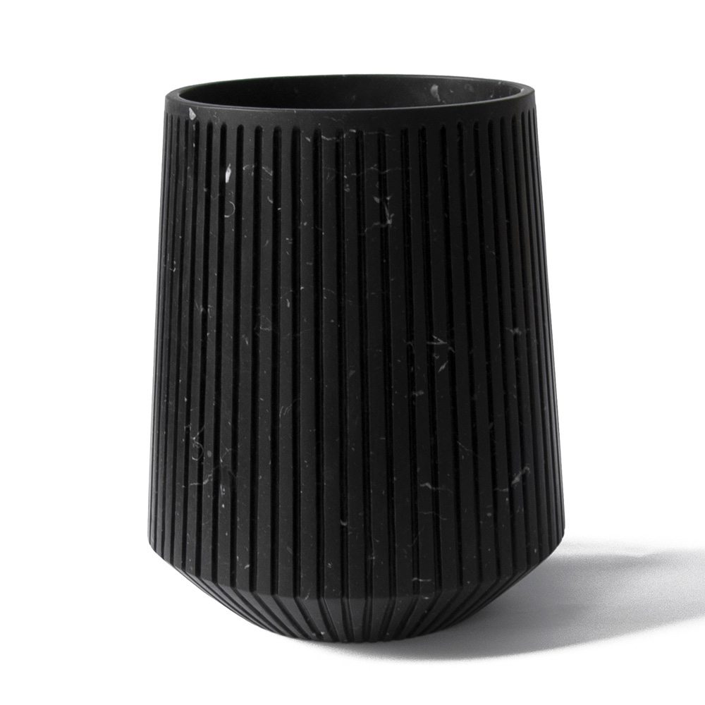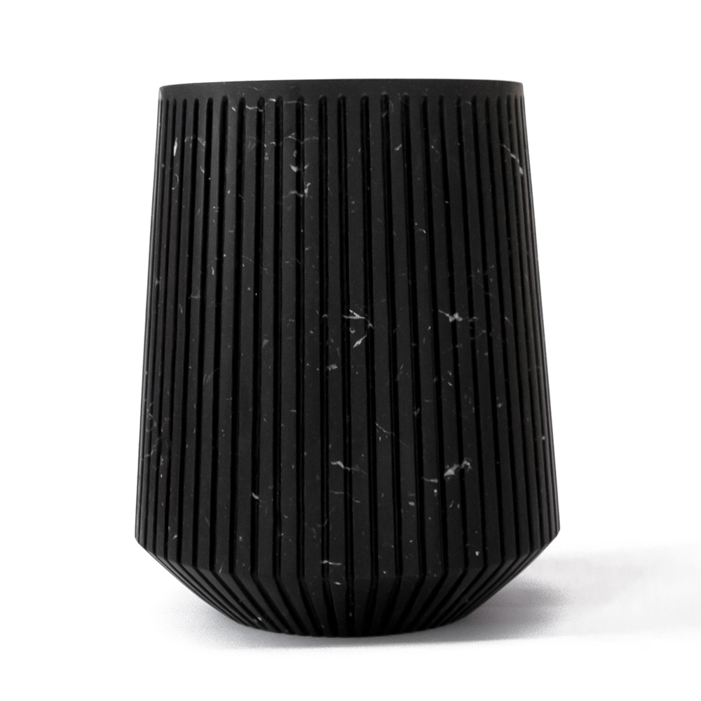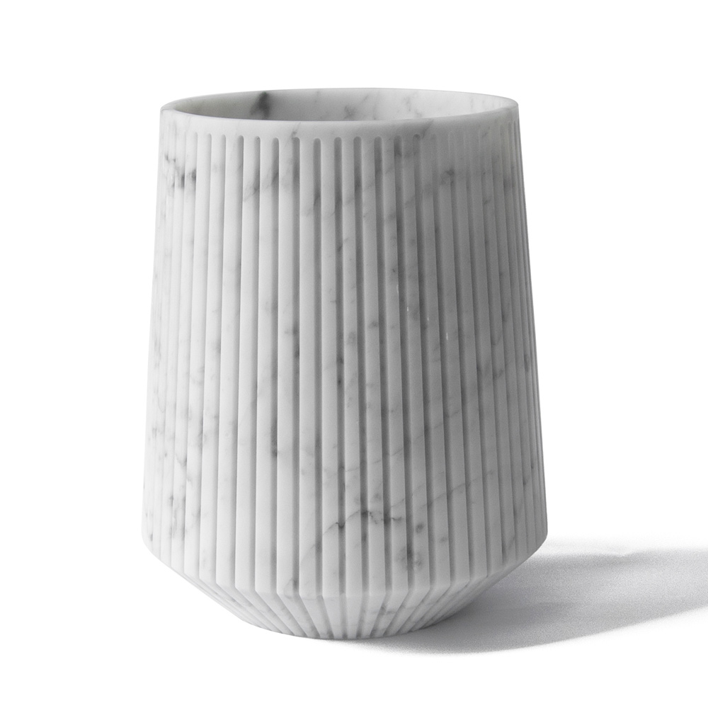 Vază mare realizată manual din marmură albă sau neagră, cu dungi de design made in Italy.