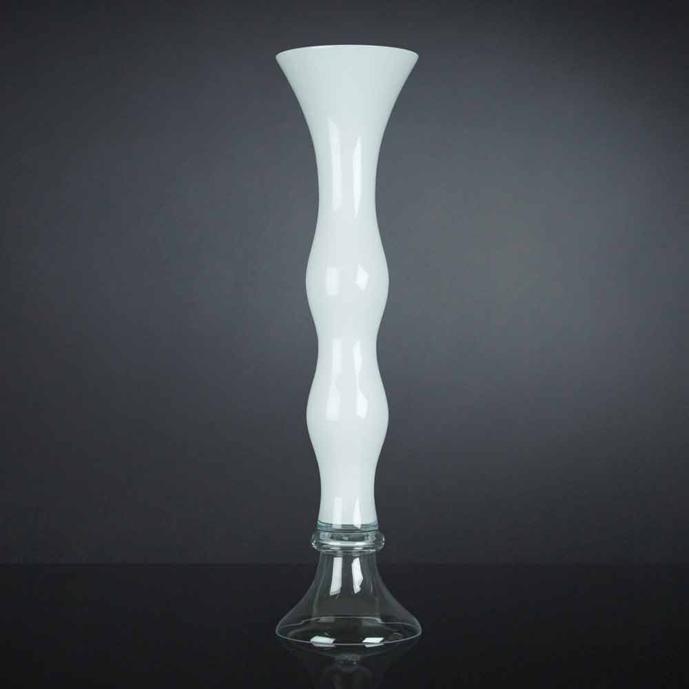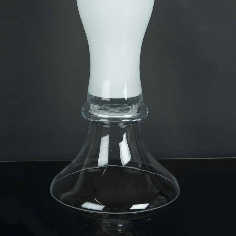 Vaza înaltă pentru interior din sticlă albă cu bază transparentă Made in Italy.