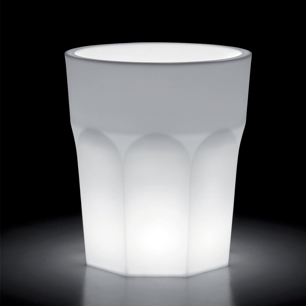 Această vază decorativă reprezintă soluția ideală pentru a combina designul și practicitatea într-un singur produs, datorită formei de sticlă care, împreună cu lumina LED care o luminează, o face unică în felul său, permițându-vă să amenajați orice spațiu exterior cu gust și personalitate, iluminând în același timp spațiul în care este plasat. Articolul este fabricat în întregime în Italia din polietilenă caracterizat printr-o rezistență excelentă la soare, șocuri și căldură. Născut ca o simplă vază decorativă pentru plantele medii / mari, acest produs este ideal și pentru petreceri sau evenimente în aer liber utilizate pentru răcirea sticlelor atunci când sunt umplute cu gheață. Include un kit LED cu lumină rece cu bec de 20W clasa A, carcasă din policarbonat, cablu negru lung de 280 cm și mufă rezistentă la stropire.