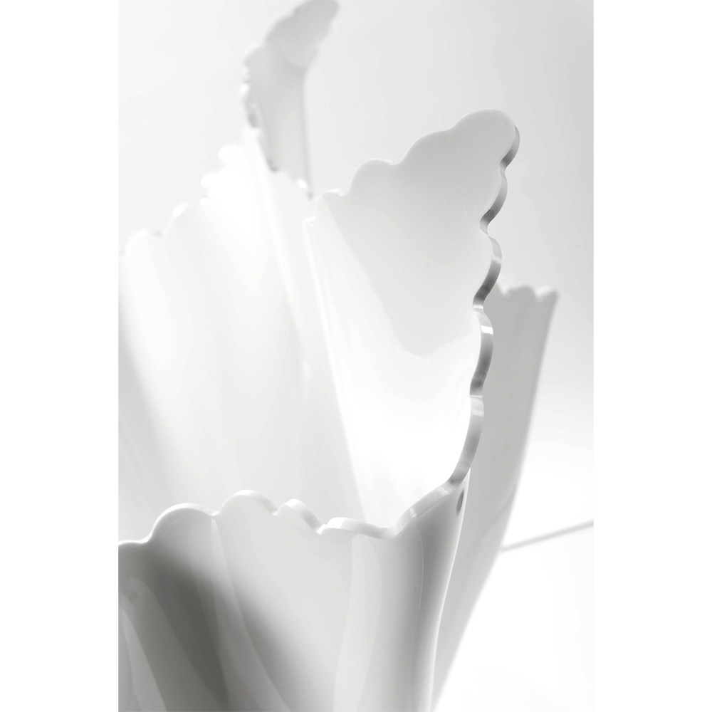 plexiglas PMMA și este drapată manual, pentru a crea o vază unică.