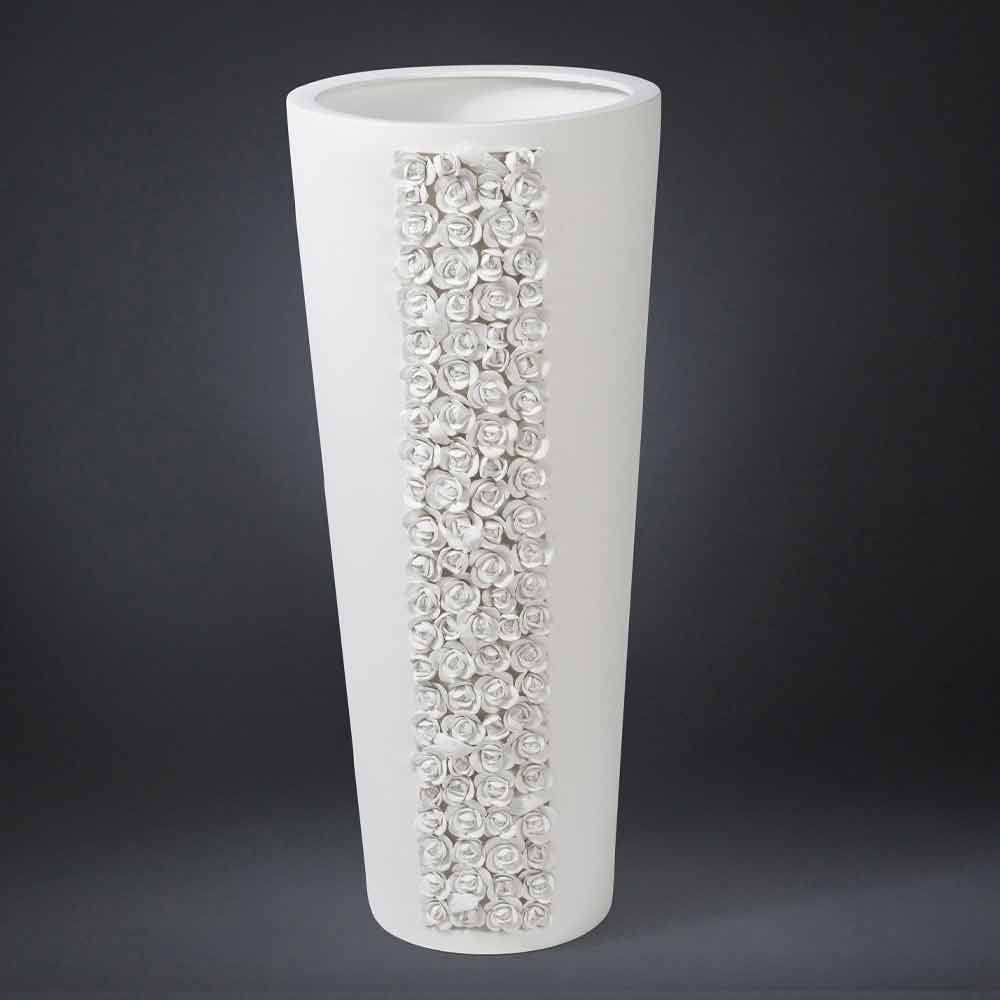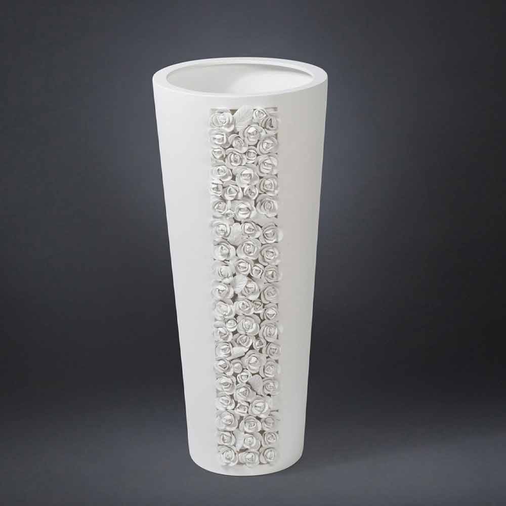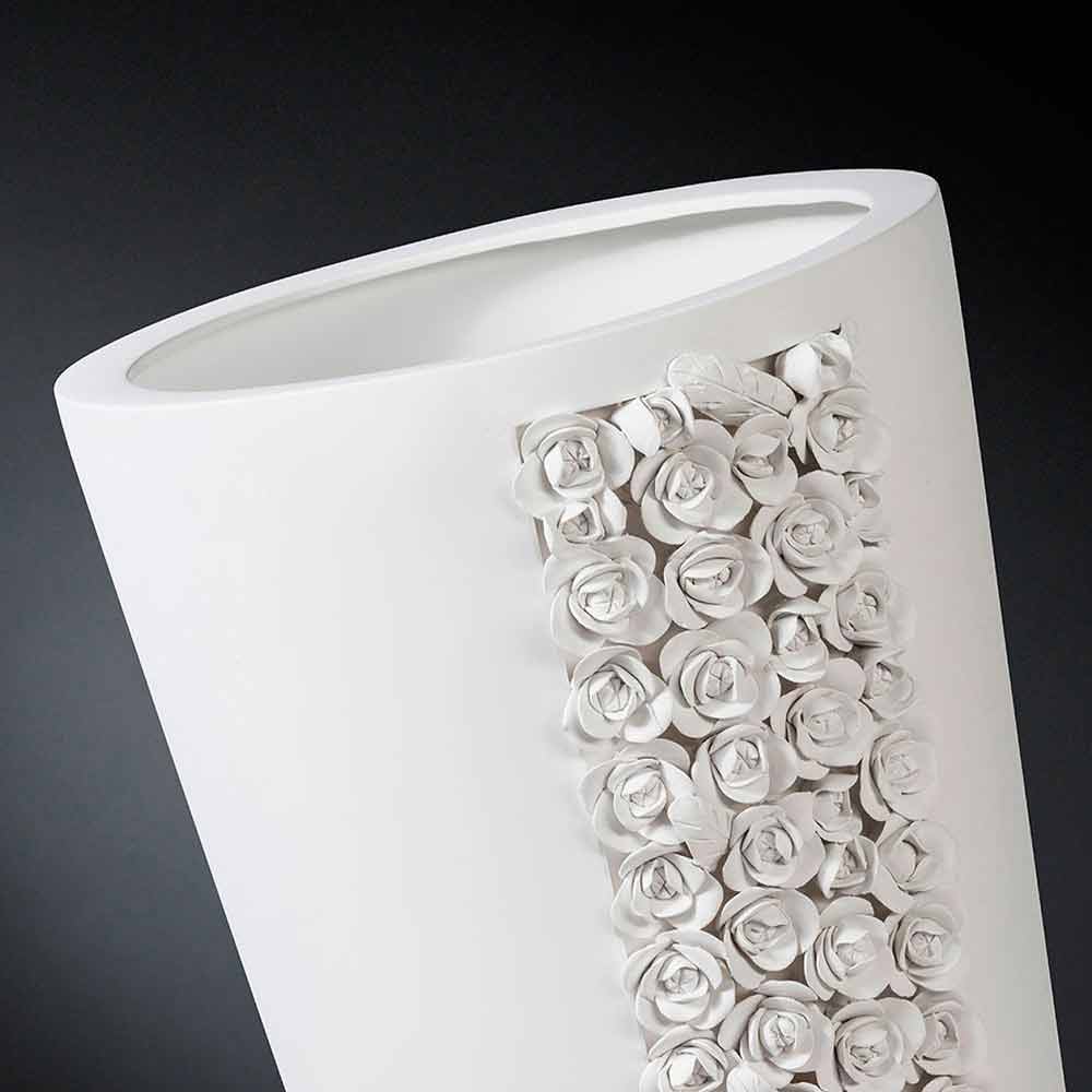 Vază ornamentală înaltă din ceramică albă realizată manual în Italia.