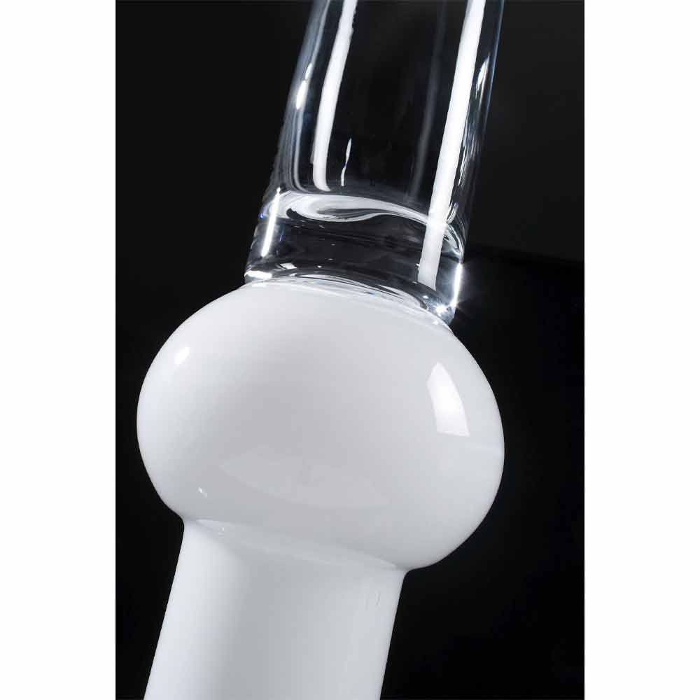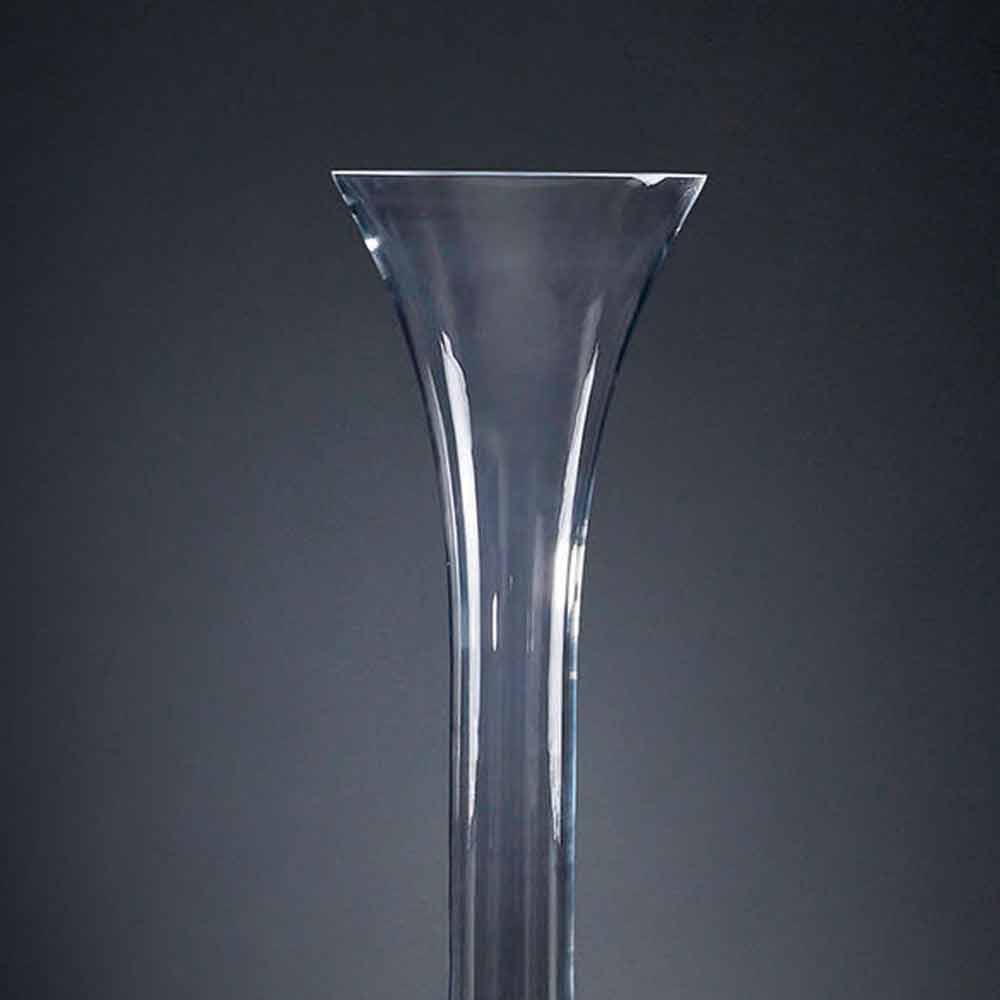 Vaza interioară înaltă din sticlă transparentă cu bază de sticlă albă printr-un proces realizat în întregime în Italia . Un complement rafinat a cărui structură se dezvoltă în înălțime propunând o figură subțire cu forme moi, perfectă pentru amenajarea și completarea mediilor cu o estetică sofisticată și clasică, datorită, de asemenea, eleganței atemporale a sticlei, a unui material de calitate și de înaltă valoare . Un design ideal pentru cele mai variate medii, de la mobilierul de casă până la cel al hotelurilor, restaurantelor, zonelor contract, spa-urilor, dar și ca decor pentru evenimente și nunți.