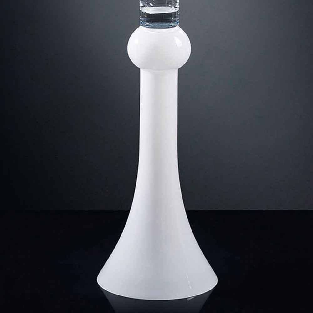 Vază decorativă înaltă din sticlă albă și transparentă fabricată în Italia.