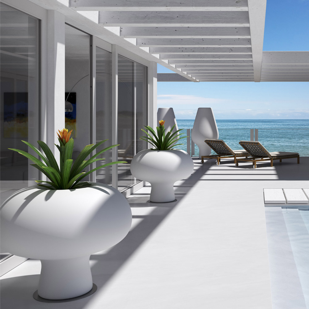 Vaza luminoasă de exterior din polietilenă opacă cu LED Made in Italy.