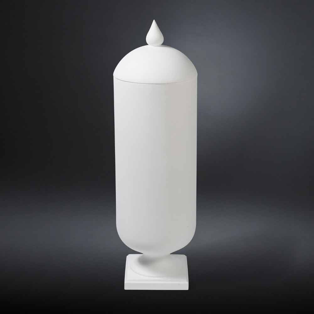 Vază decorativă din ceramică albă opacă fabricată manual în Italia.