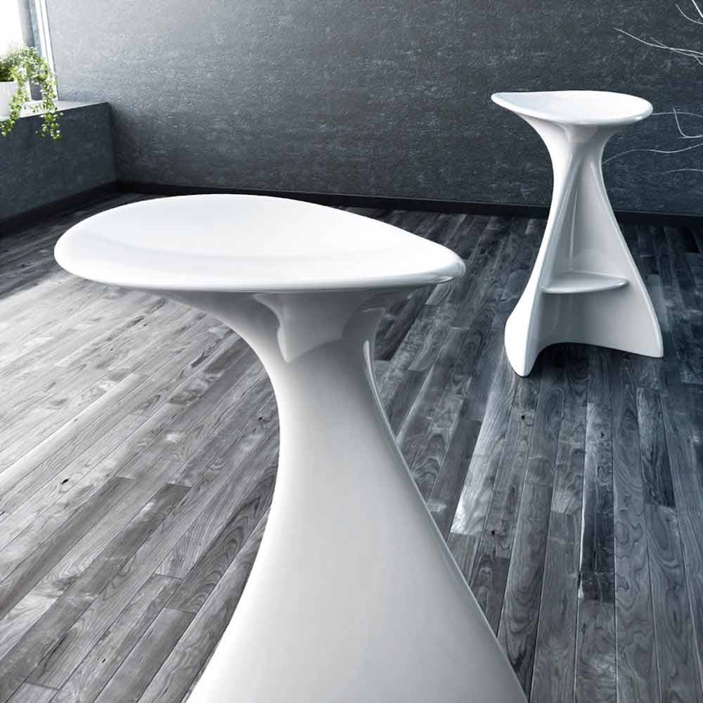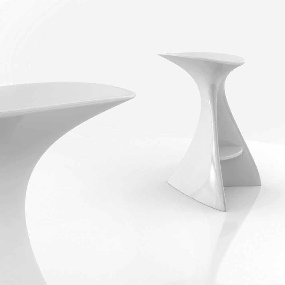 Scaun monolit din Solid Surface; caracterizat printr-un design organic/biomorf care amintește de lumea science-fiction.