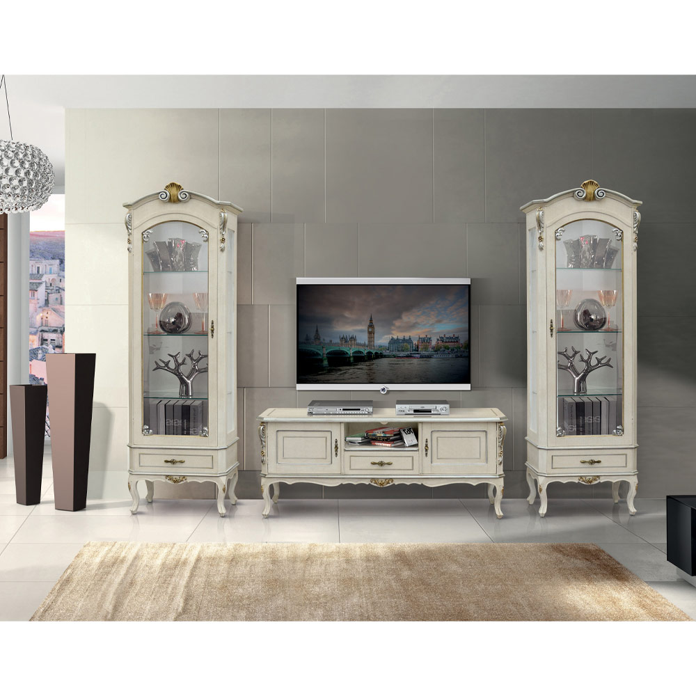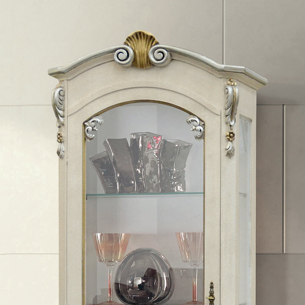 Vitrina clasica cu usa si sertar din lemn alb Made in Italy.
