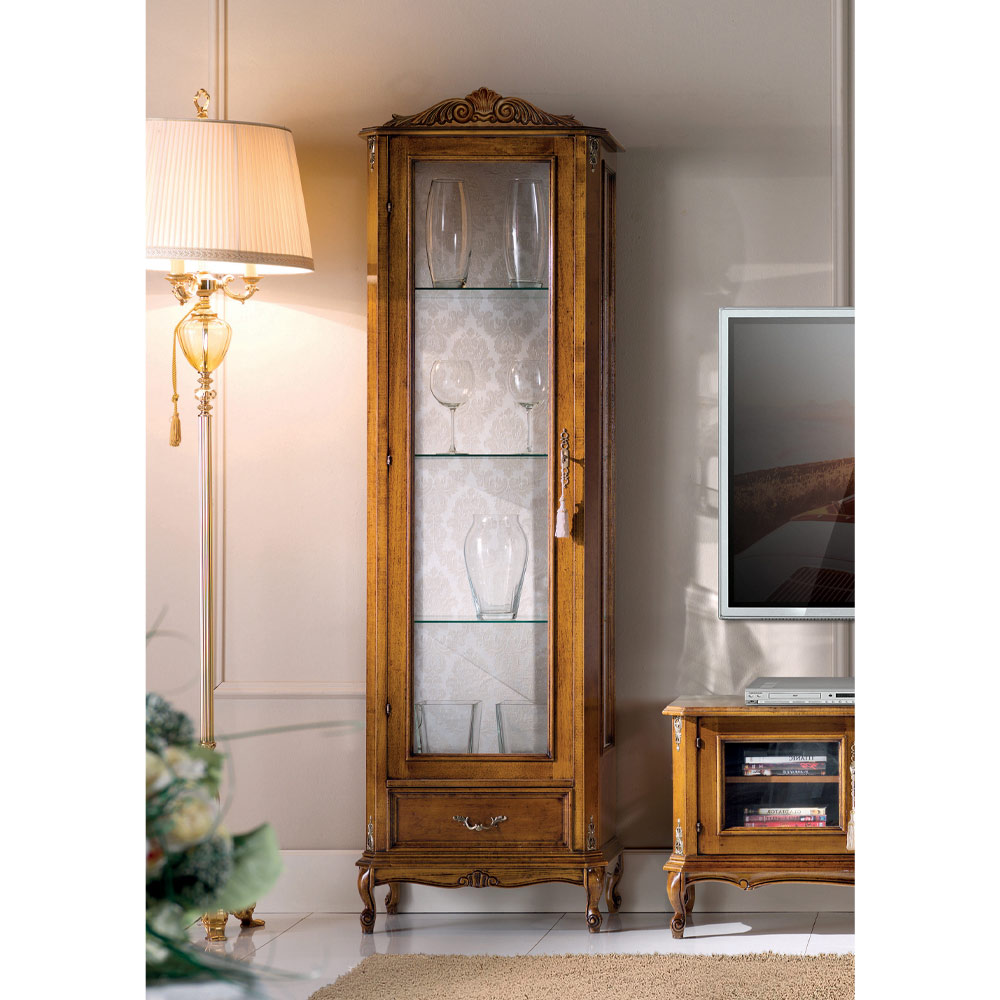 Vitrina clasica de living din lemn de nuc cu 1 usa Made in Italy.