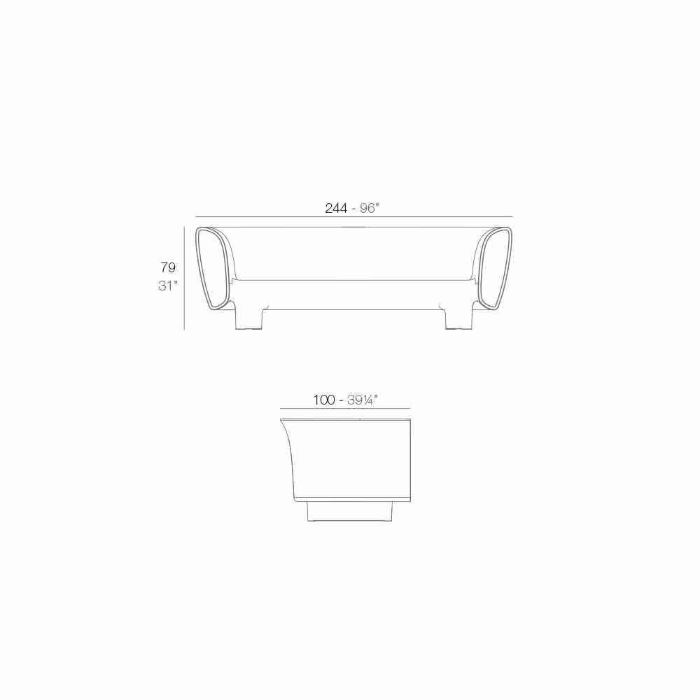Canapea din rășină din polietilenă prin matrița rotativă cu pereți dubli; negru lăcuit.